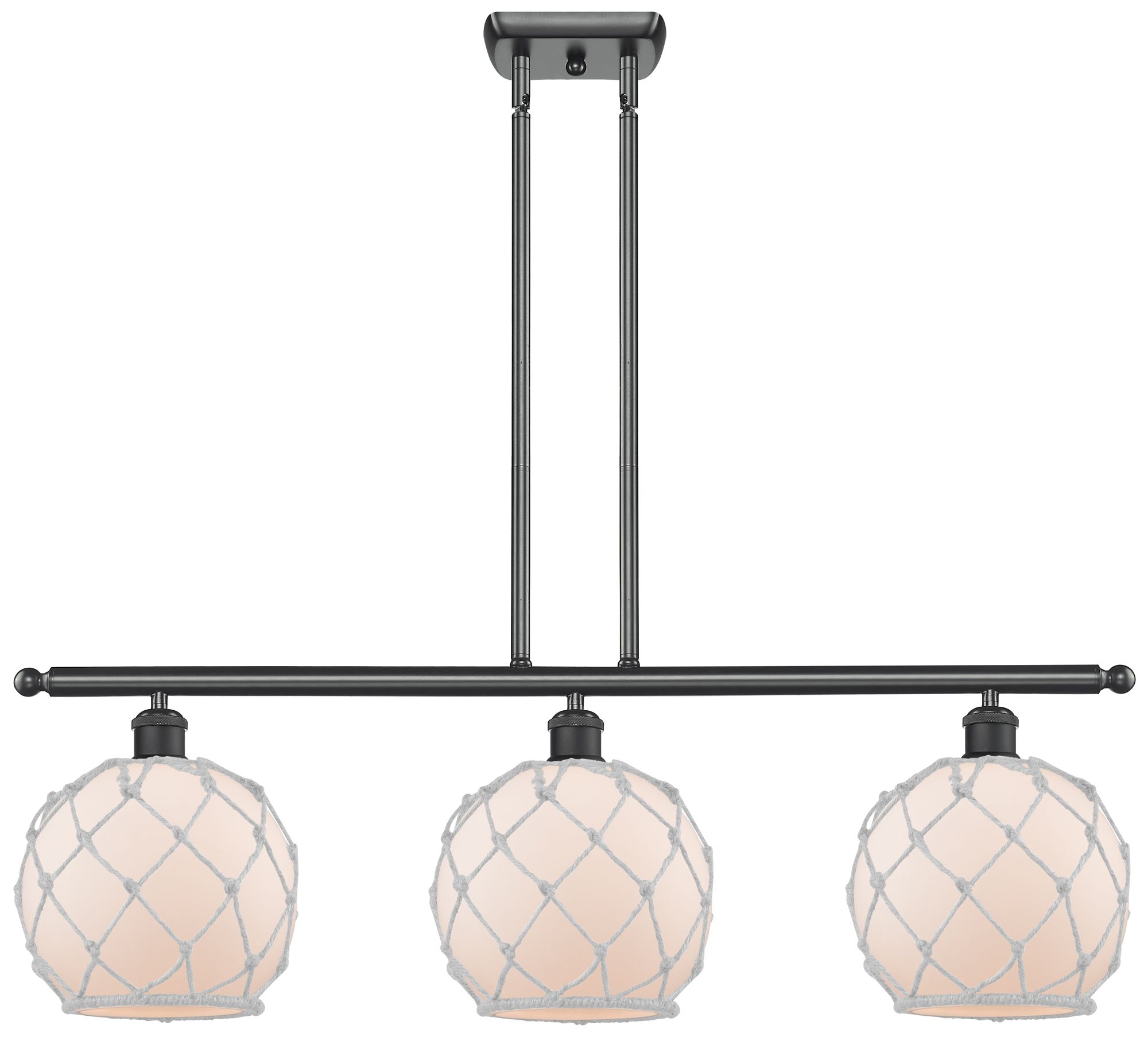 Farmhouse 36"W 3 Light Matte Black Island Light w/ White Shade