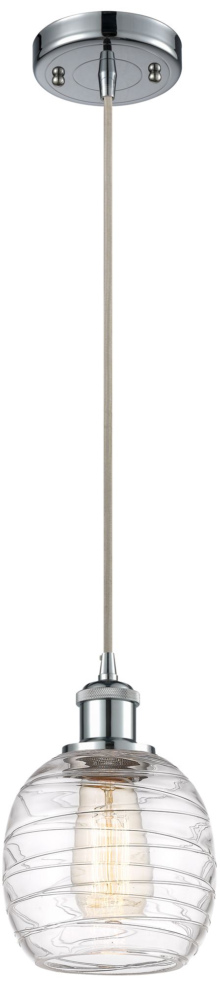 Belfast 6" Wide Polished Chrome Corded Mini Pendant w/ Deco Swirl Shad
