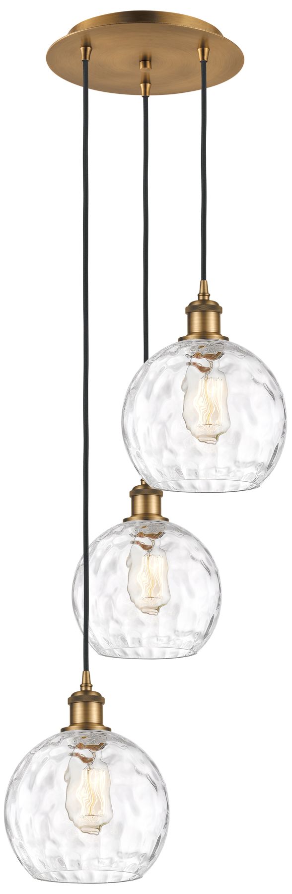 Athens 14.75"W 3 Light Brushed Brass Multi-Pendant w/ Water Glass Shad