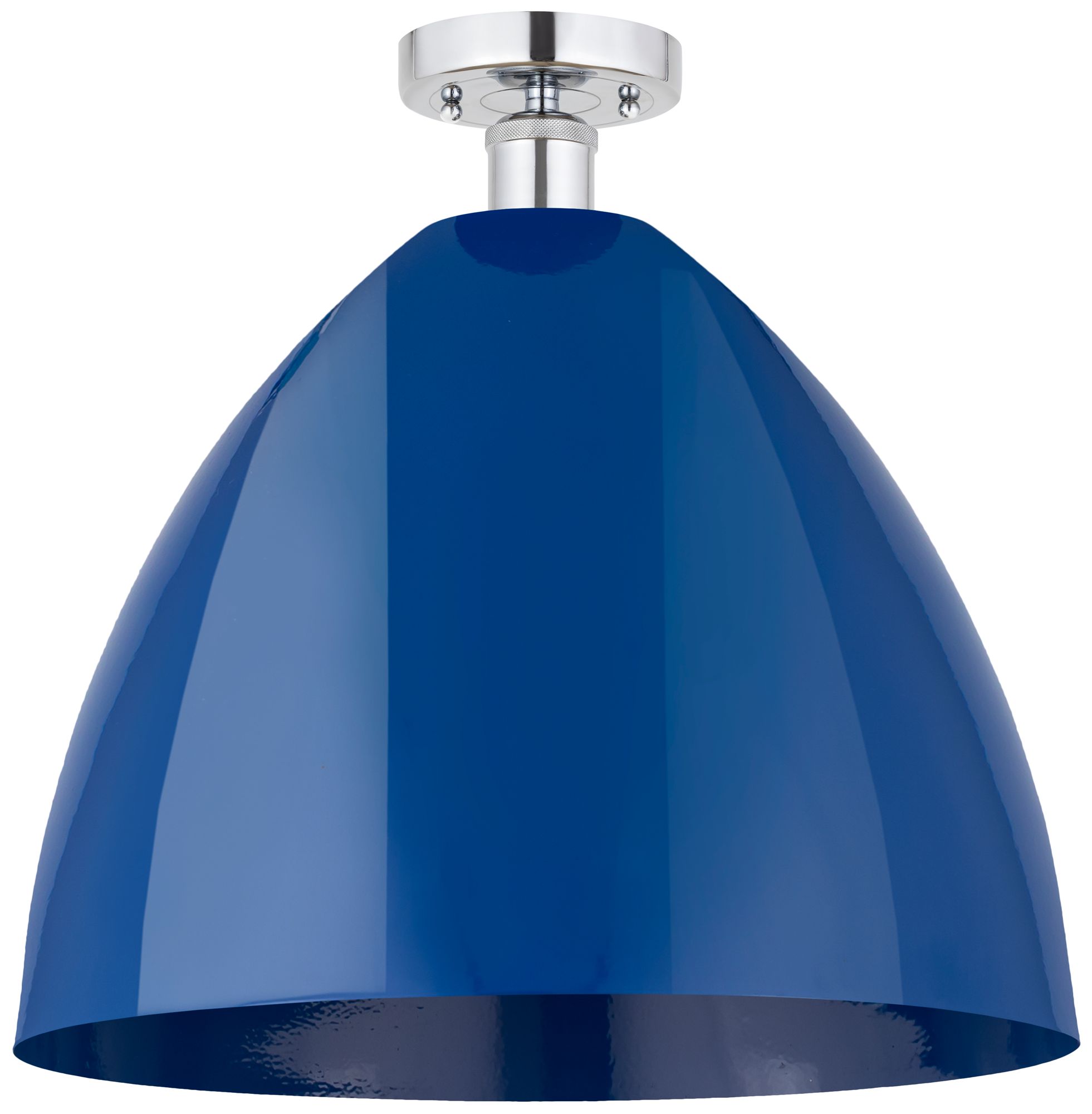 Edison Plymouth Dome 16"W Polished Chrome Semi Flush Mount w/ Blue Sha