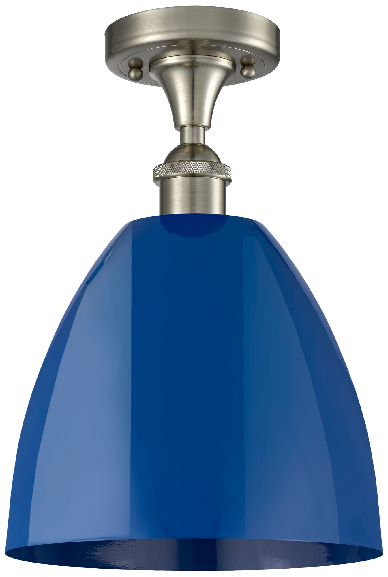 Plymouth Dome 9" Wide Brushed Satin Nickel Semi Flush Mount w/ Blue Sh