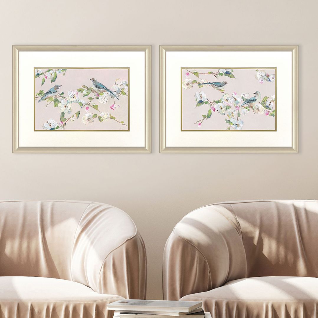 Birds on Branches 26"W x 20"H Framed Art - Set of 2