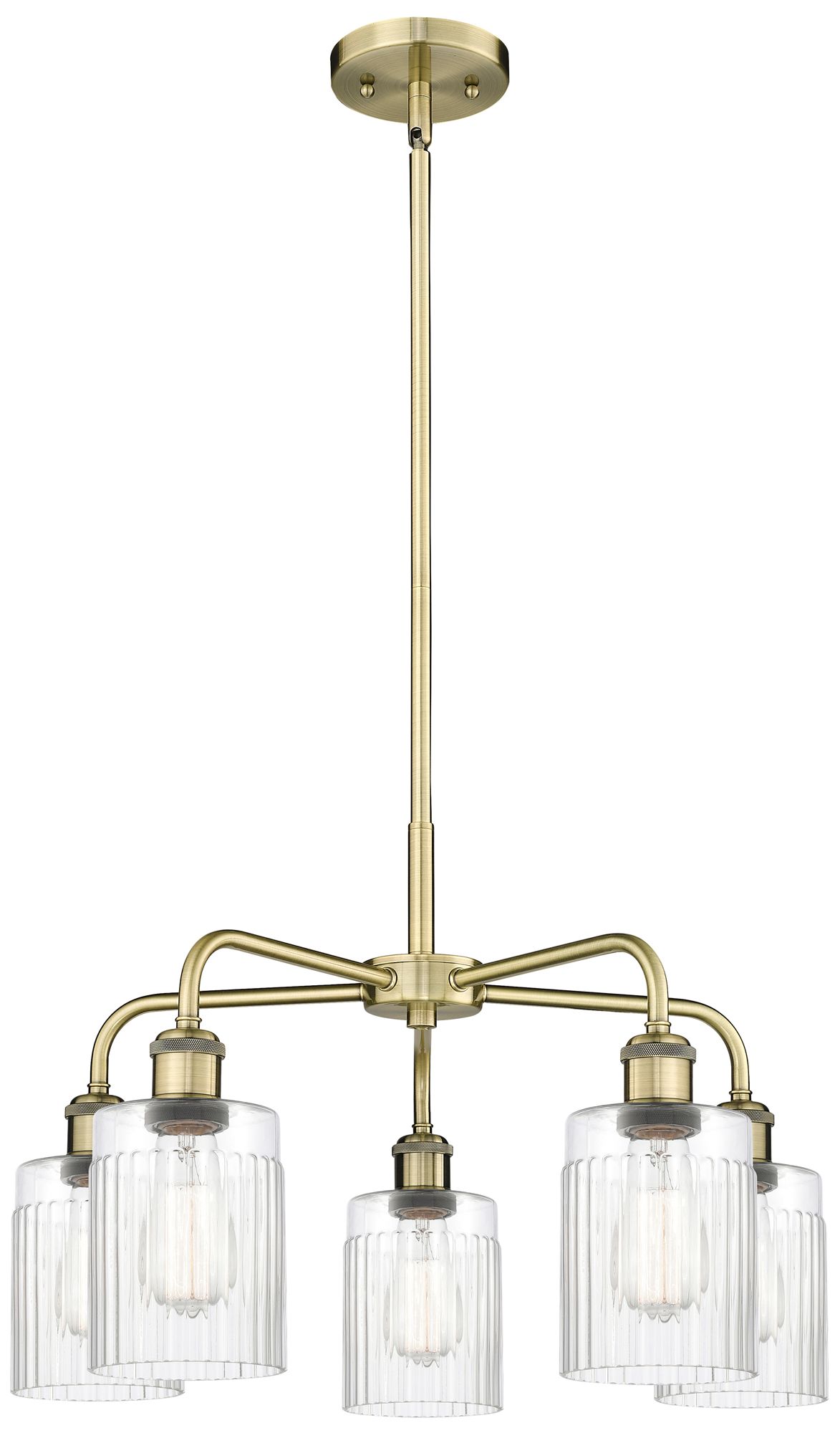 Hadley 22.5"W 5 Light Antique Brass Stem Hung Chandelier With Clear Sh