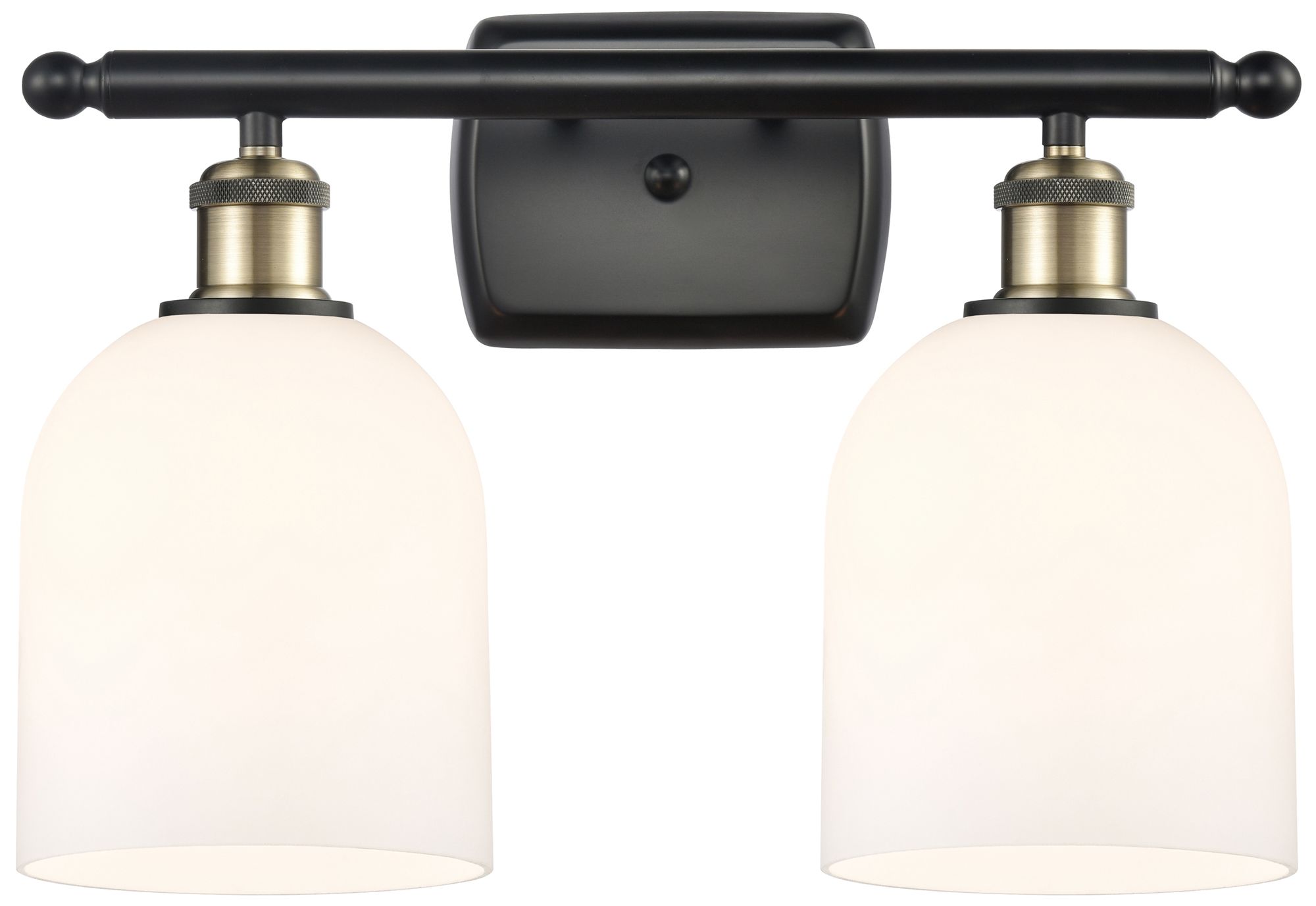 Ballston Bella 15.5"W 2 Light Black Brass Bath Light w/ Gloss White Sh