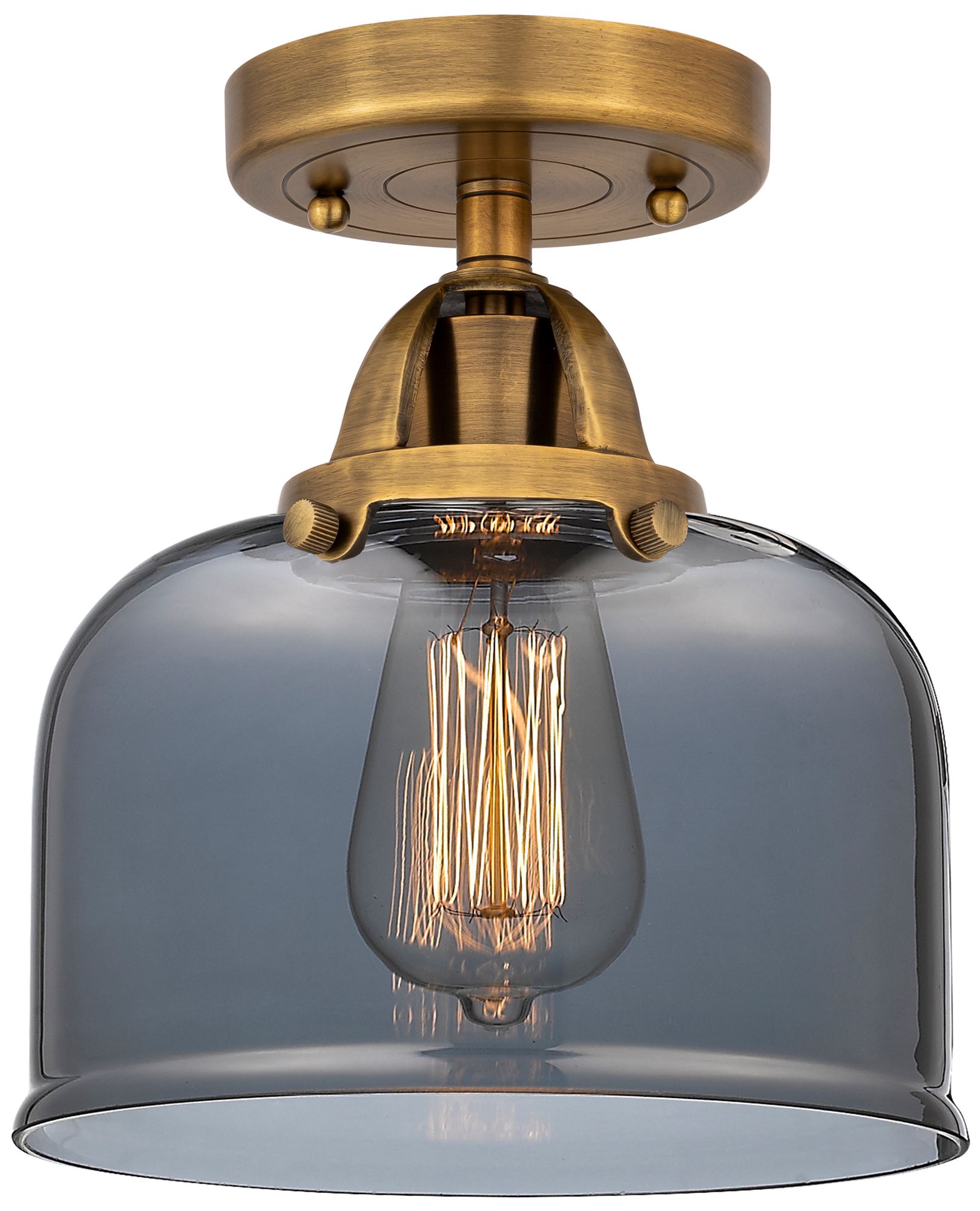 Nouveau 2 Bell 8" LED Semi-Flush Mount - Brushed Brass - Plated Smoke