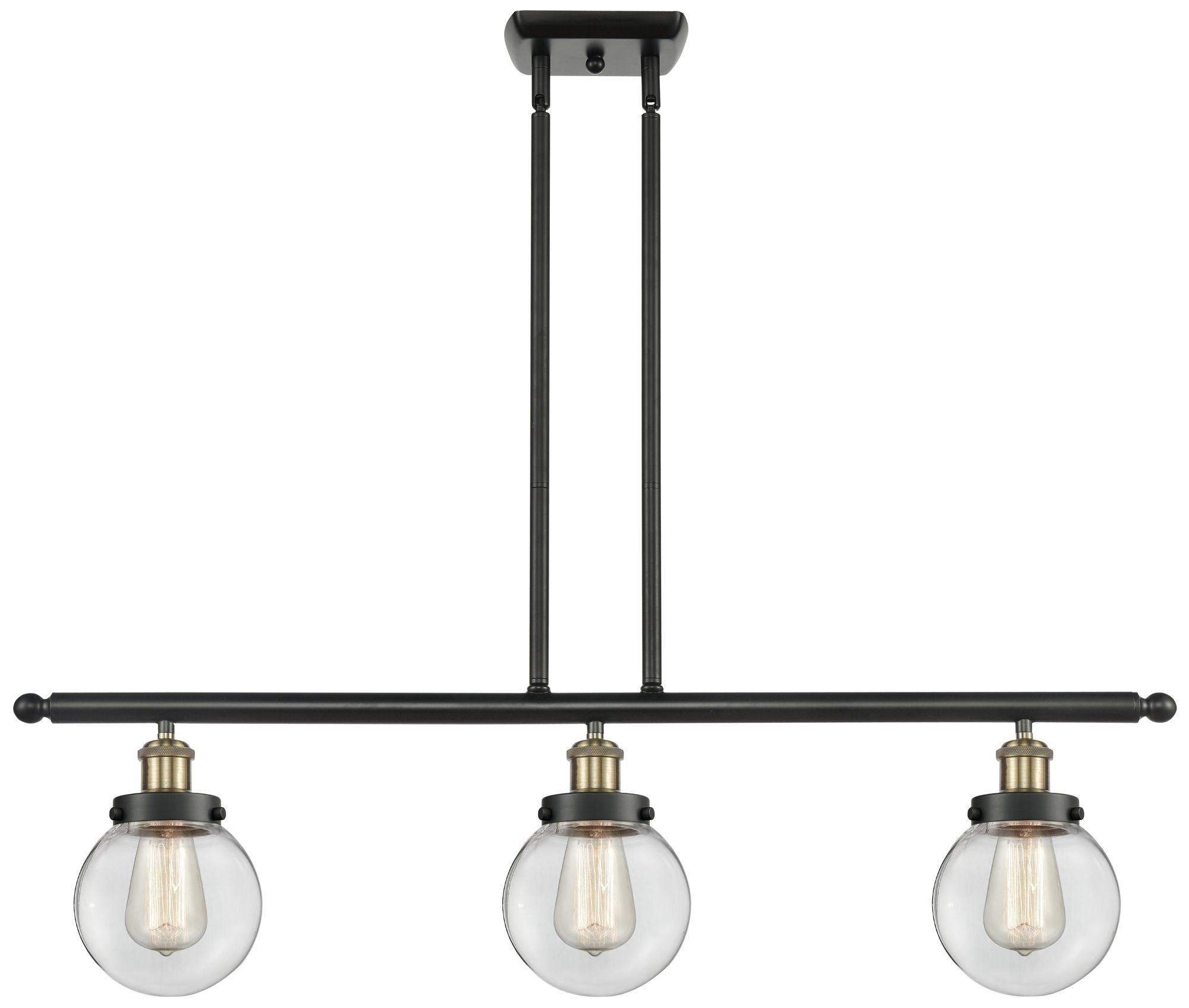 Beacon 36" Wide 3 Light Black Brass Stem Hung Island Light w/ Clear Sh