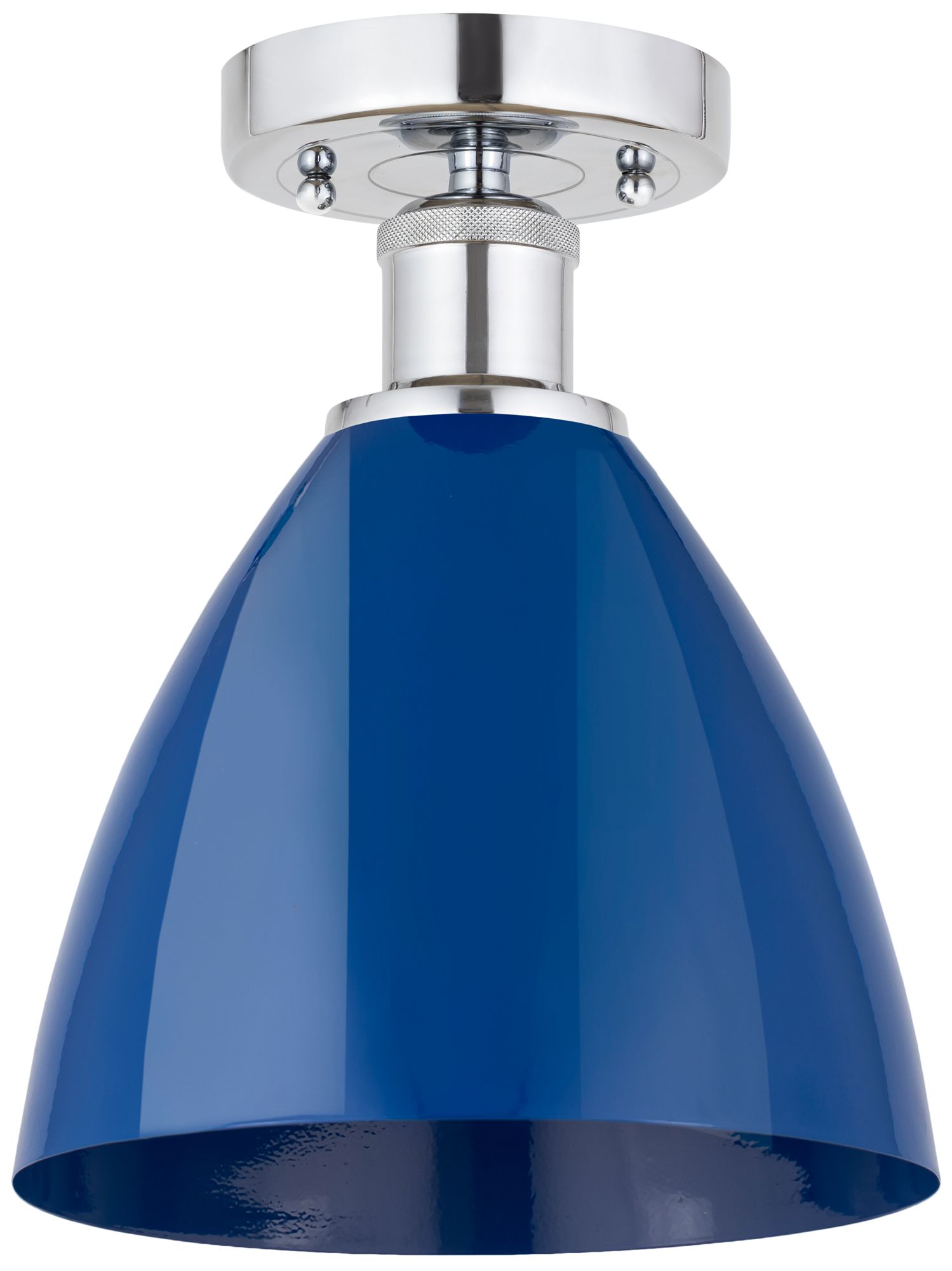 Edison Plymouth Dome 7.5"W Polished Chrome Semi Flush Mount w/ Blue Sh