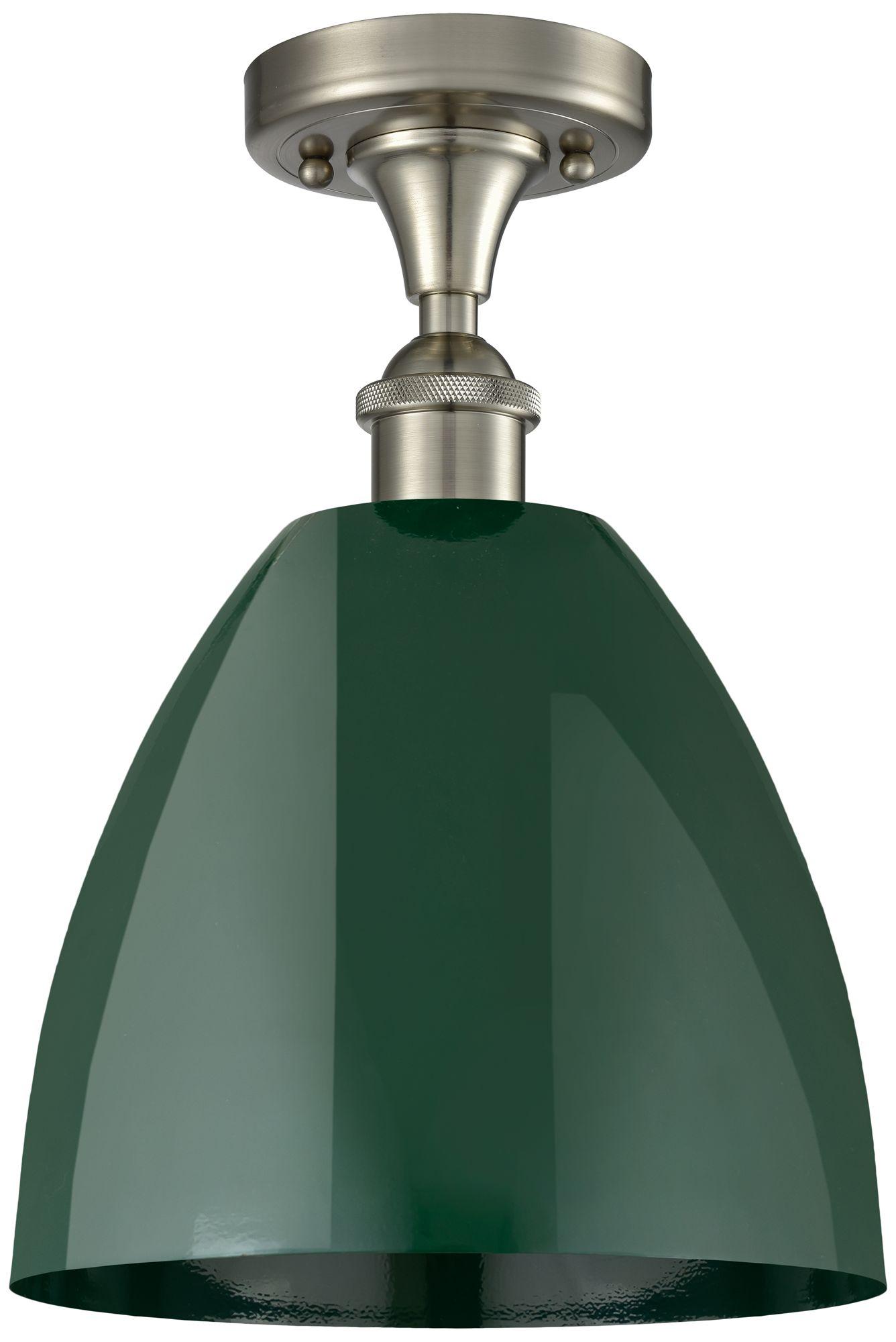 Plymouth Dome 9" Wide Brushed Satin Nickel Semi Flush Mount w/ Green S