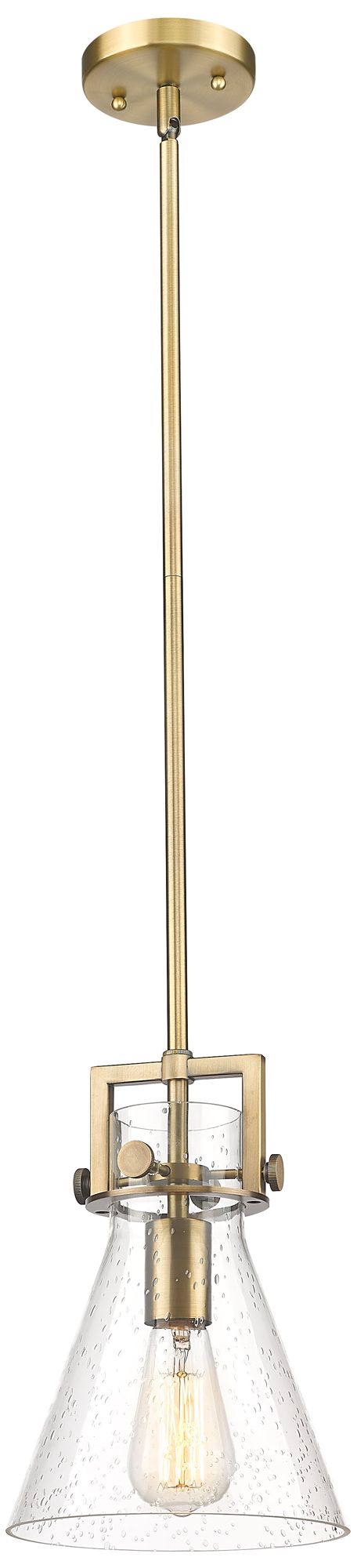 Newton Cone 8" Wide Stem Hung Brushed Brass Pendant With Seedy Shade