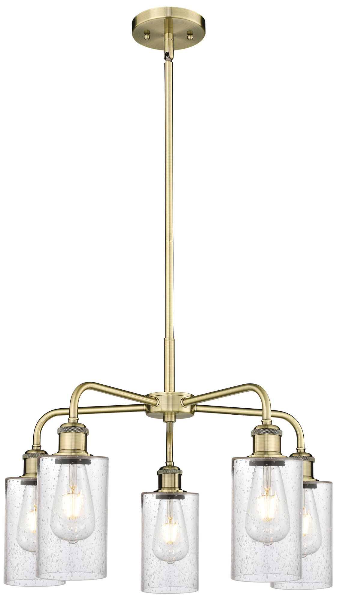 Clymer 21.88"W 5 Light Antique Brass Stem Hung Chandelier With Seedy S