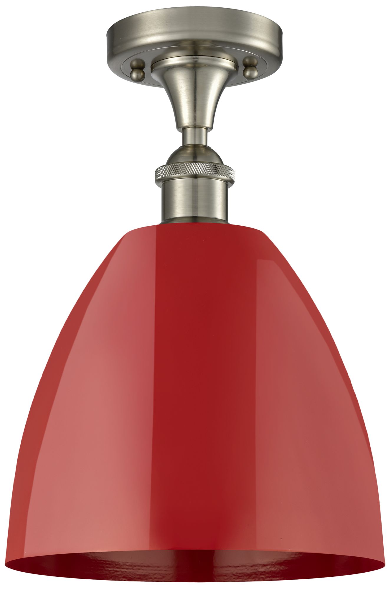 Plymouth Dome 9" Wide Brushed Satin Nickel Semi Flush Mount w/ Red Sha