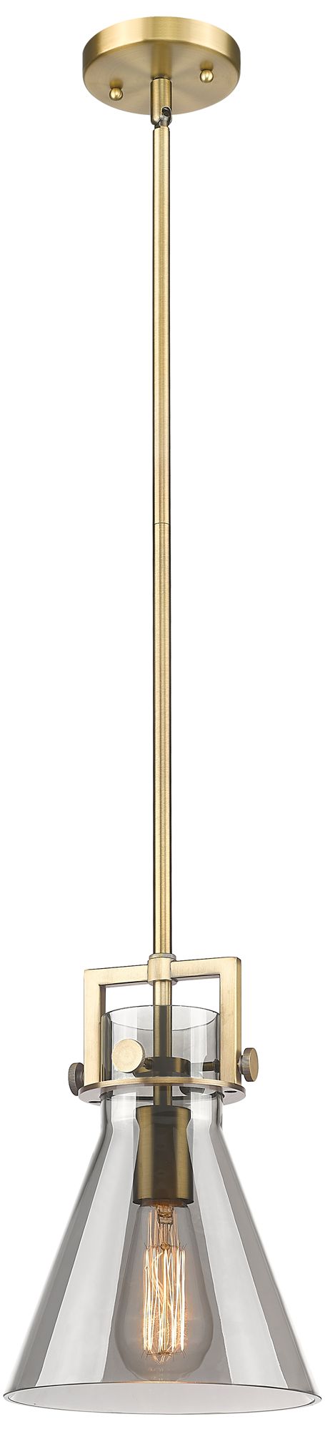 Newton Cone 8" Wide Stem Hung Brushed Brass Pendant With Smoke Shade