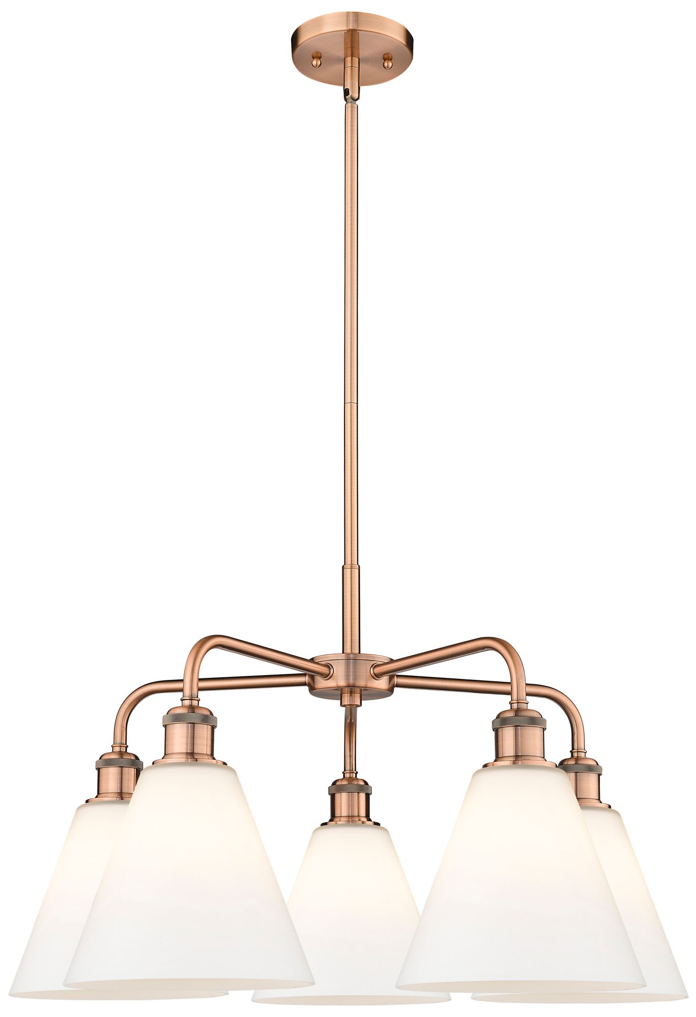 Berkshire 26"W 5 Light Antique Copper Stem Hung Chandelier With White