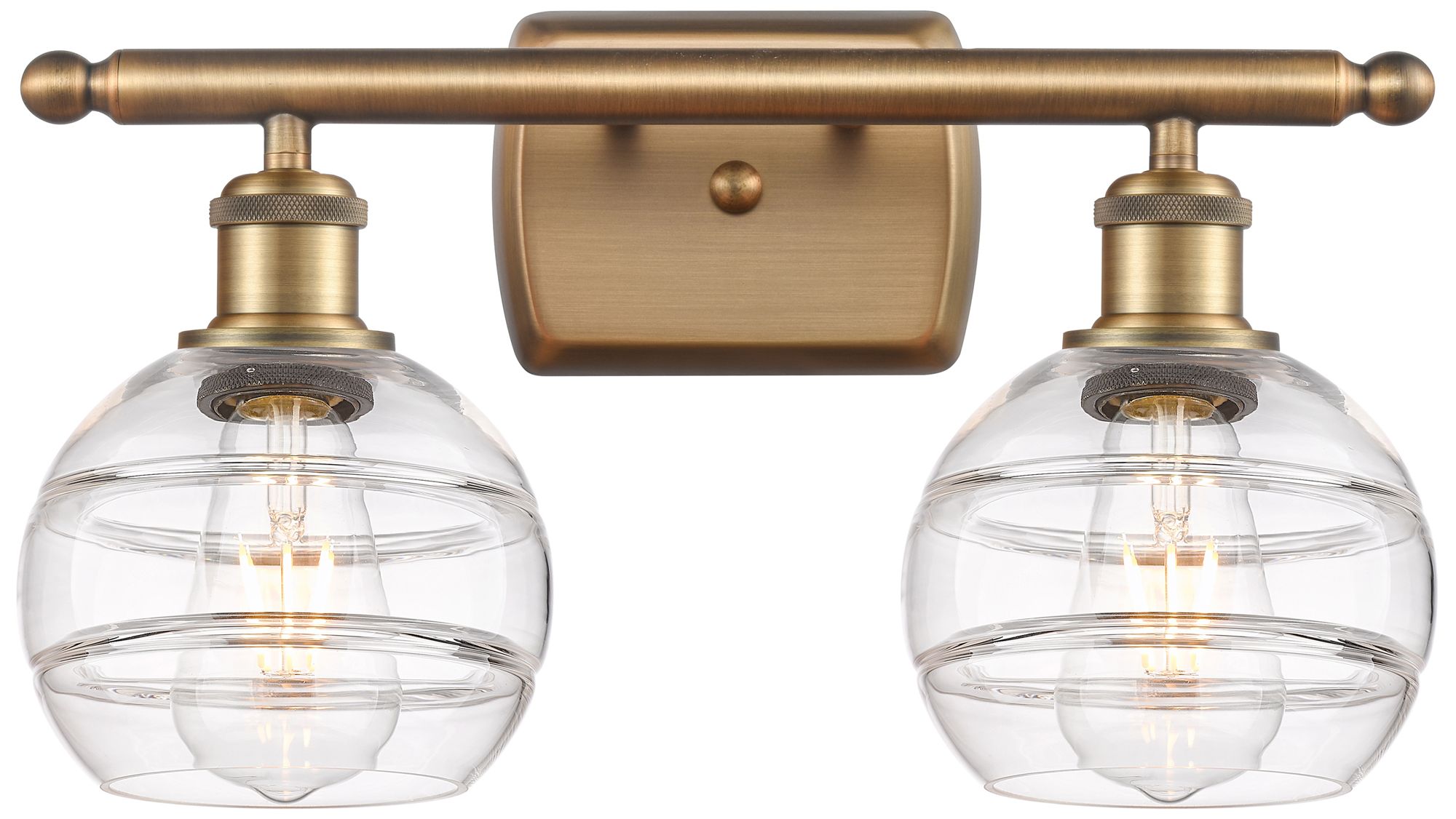 Ballston Rochester 15.88"W 2 Light Brushed Brass Bath Light w/ Clear S