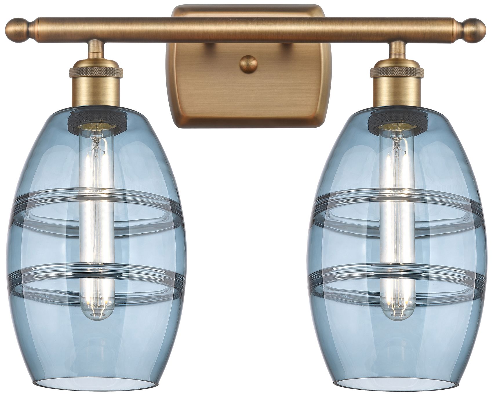 Ballston Vaz 15.88"W 2 Light Brushed Brass Bath Light w/ Blue Shade