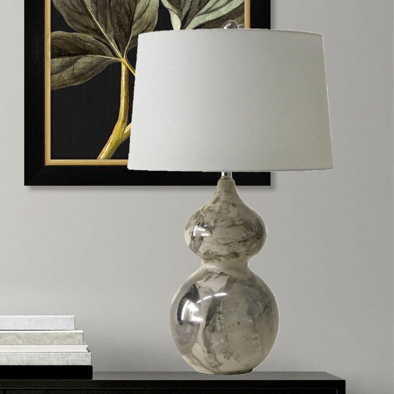 River Ceramic Large Double Gourd 29" Lamp in Modern Gloss Grey w/Plati