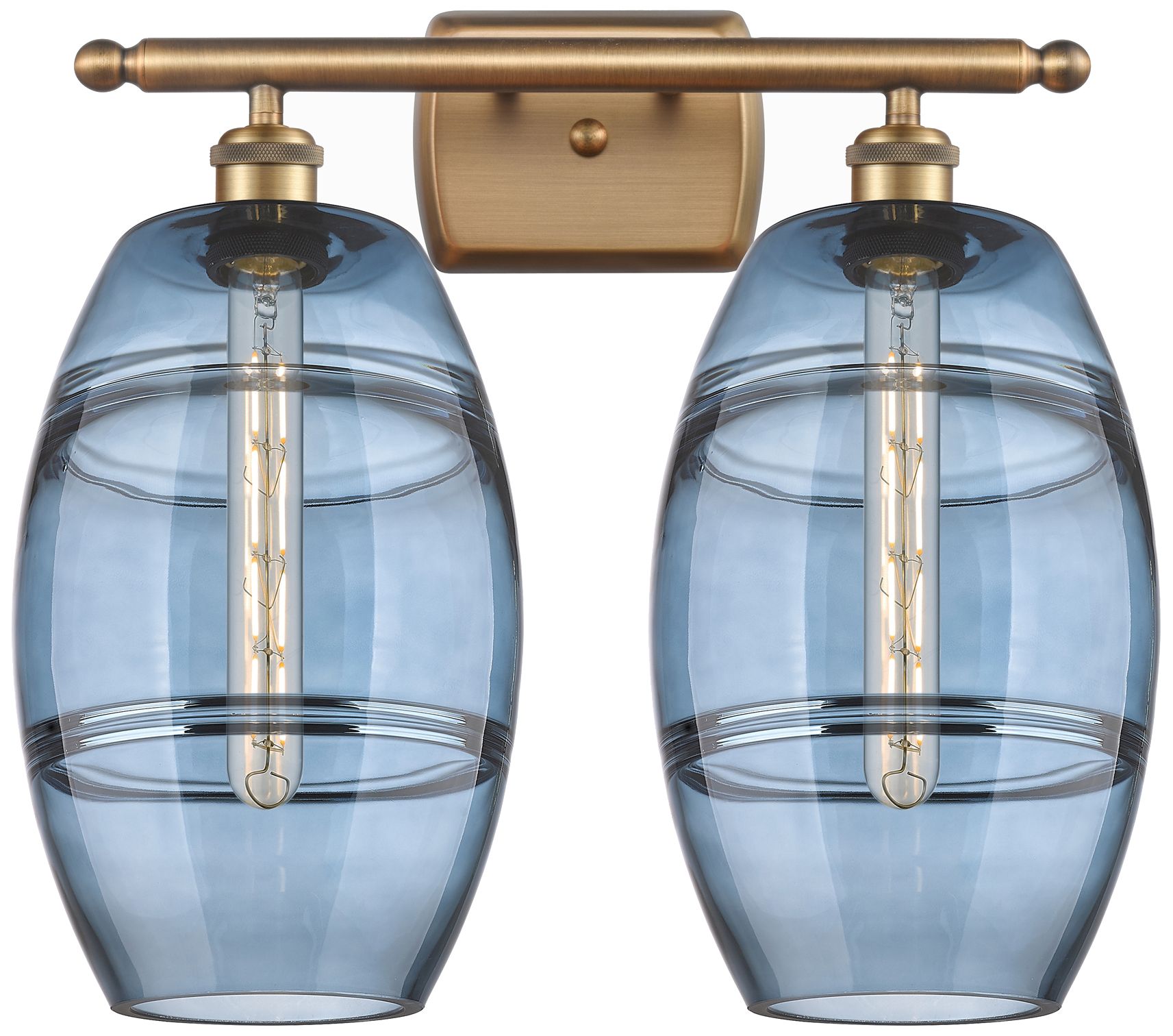 Ballston Vaz 18"W 2 Light Brushed Brass Bath Light w/ Princess Blue Sh