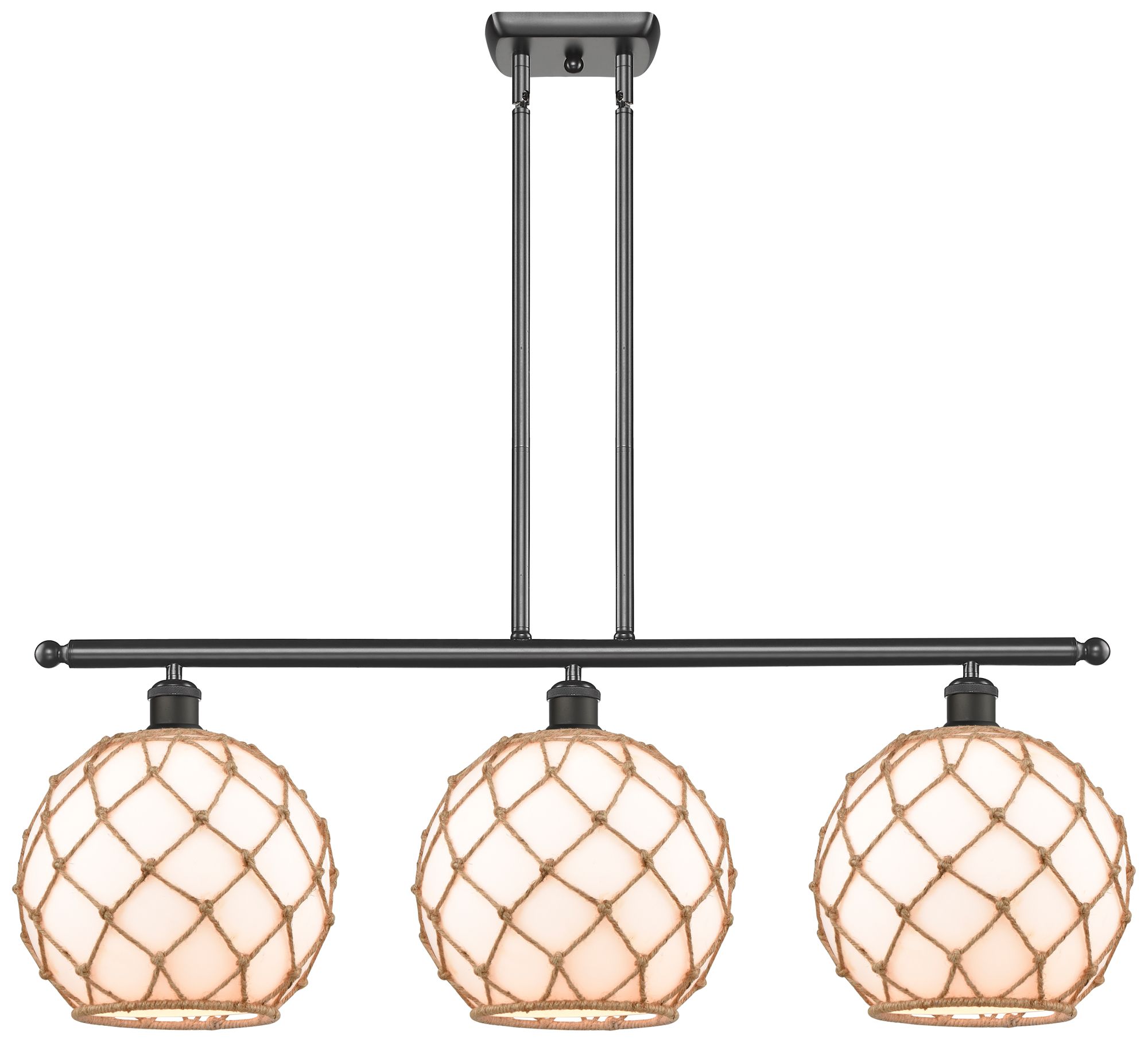 Large Farmhouse 36"W 3 Light Bronze Island Light w/ White and Brown Sh