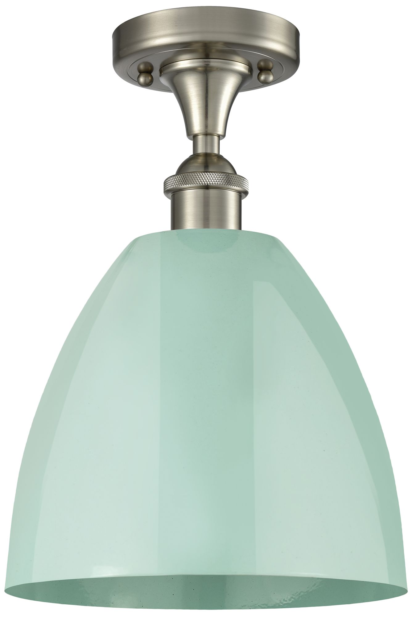 Plymouth Dome 9"W Brushed Satin Nickel Semi Flush Mount w/ Seafoam Sha