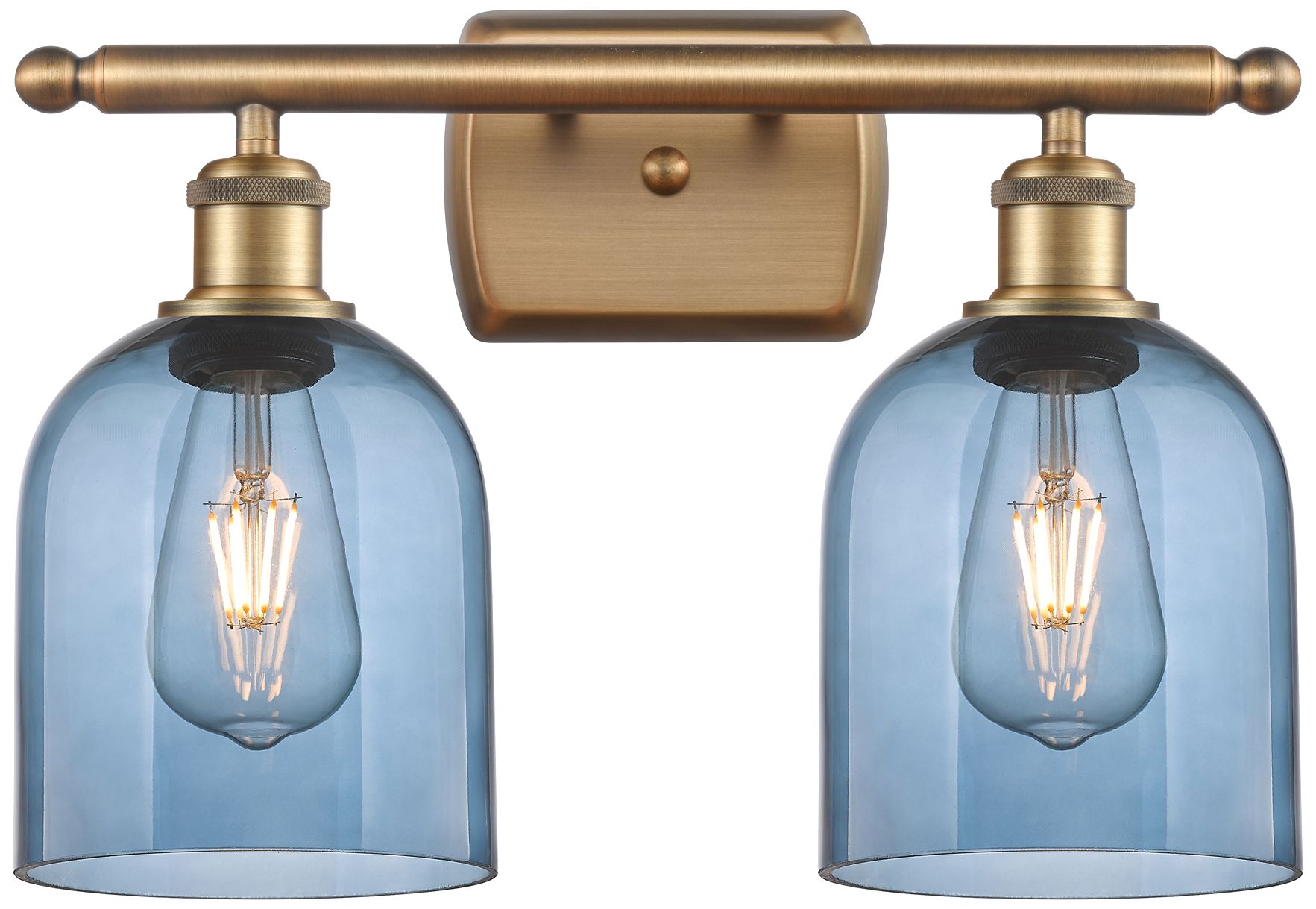 Ballston Bella 15.5"W 2 Light Brushed Brass Bath Light w/ Blue Shade