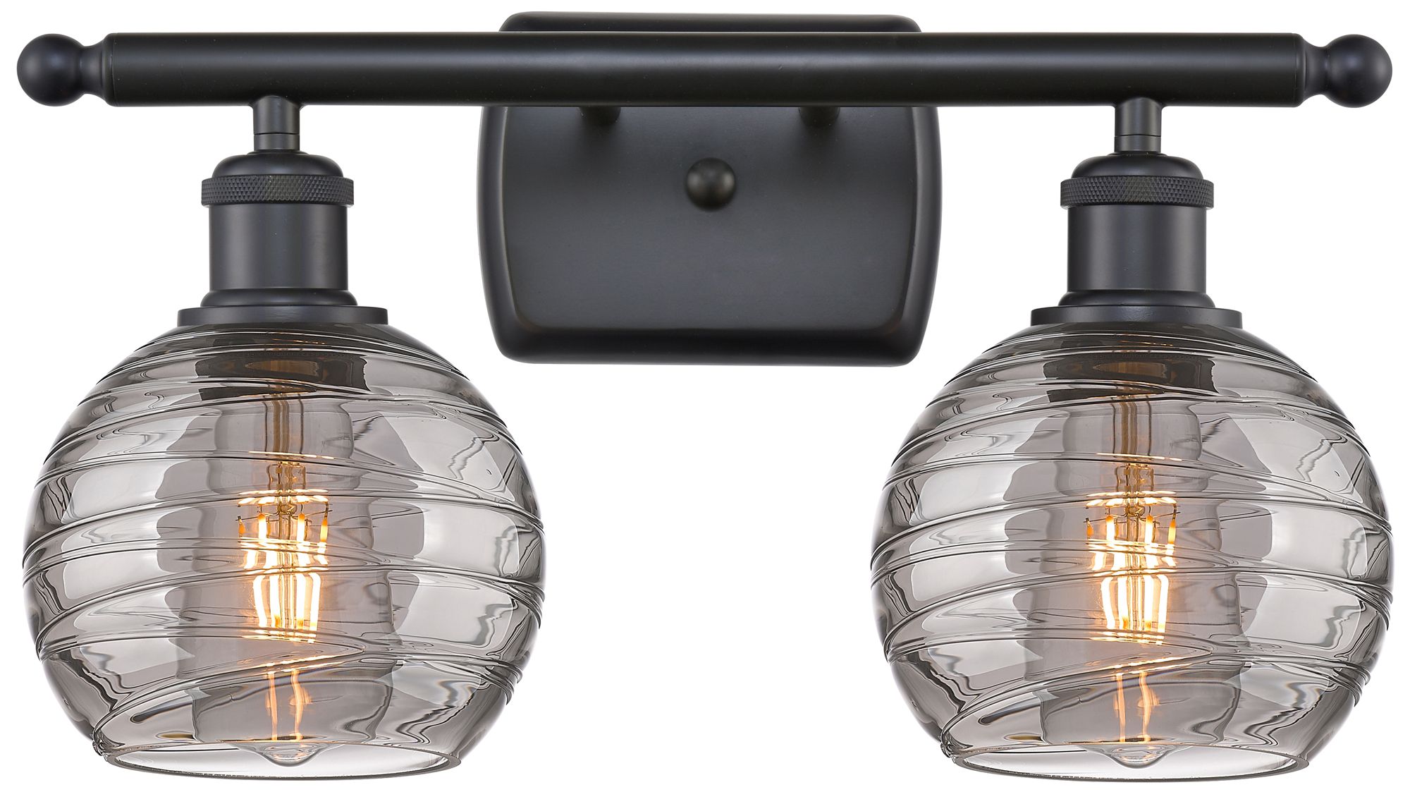 Ballston Athens 15.88"W 2 Light Matte Black Bath Light w/ Smoke Swirl