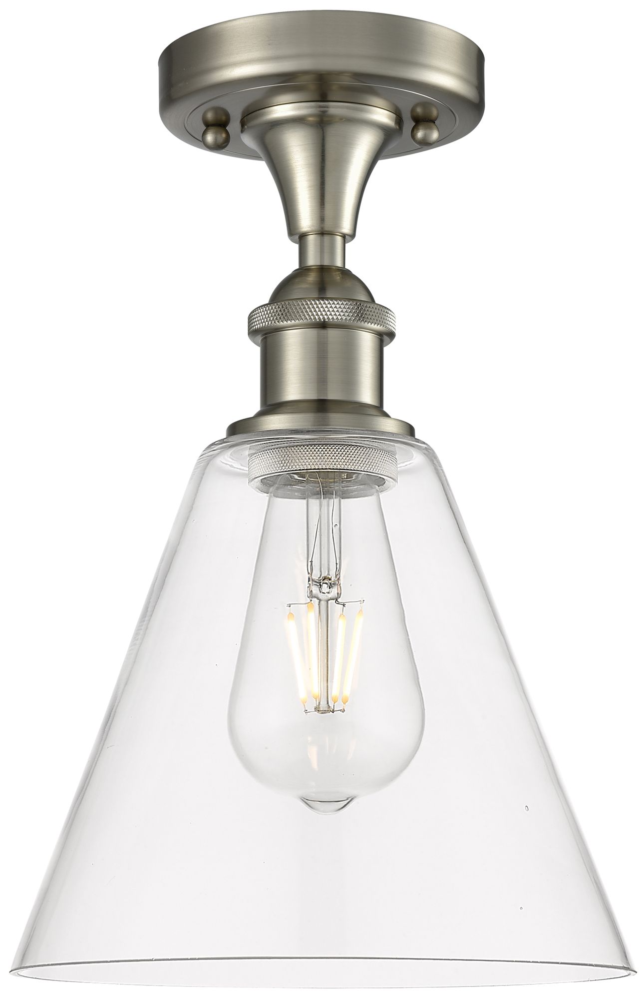 Berkshire Glass 8" Semi-Flush Mount - Brushed Satin Nickel - Clear Sha