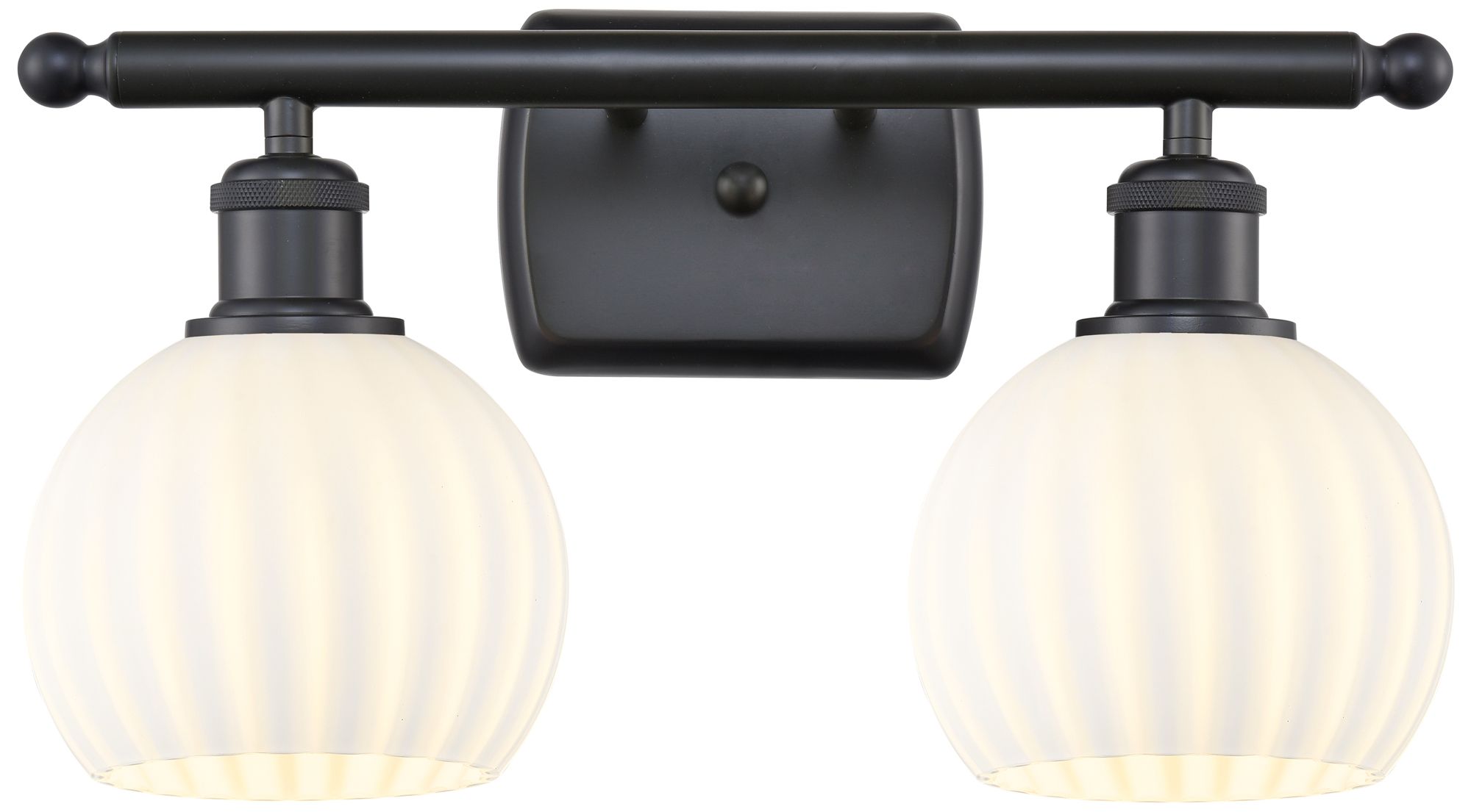 Ballston 16" Wide 2 Light Matte Black Bath Light With White Venetian S