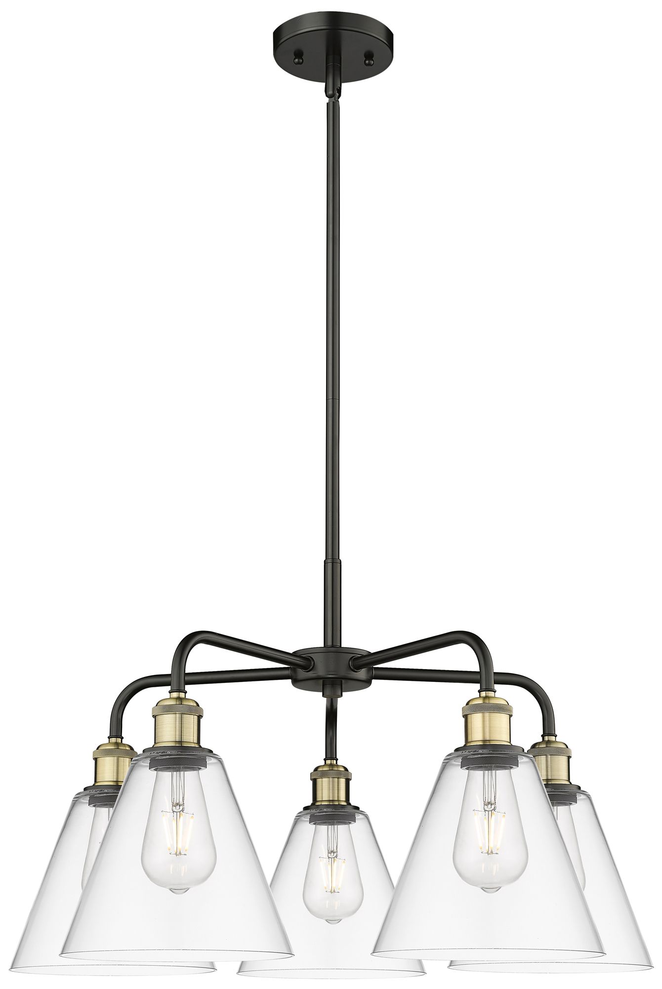 Berkshire 26"W 5 Light Black Brass Stem Hung Chandelier With Clear Sha