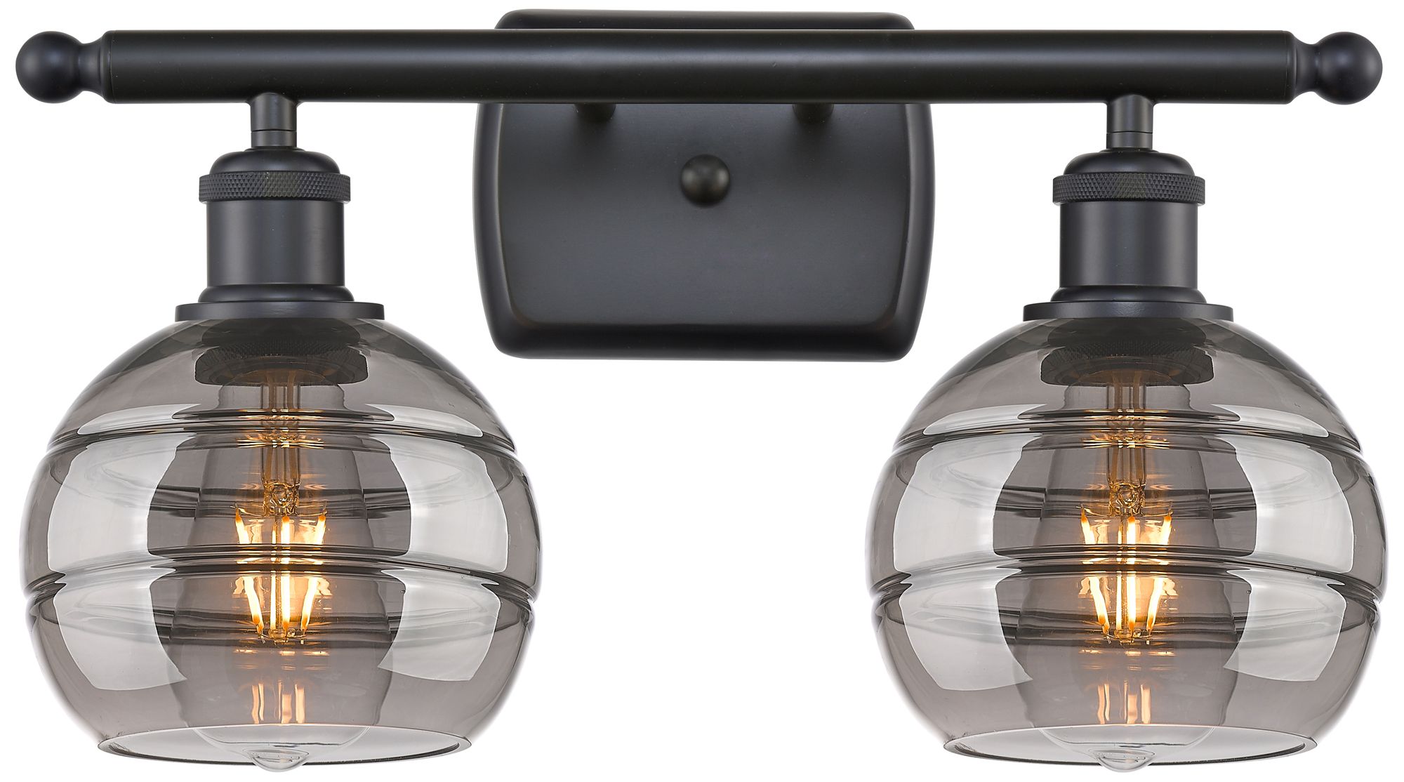 Ballston Rochester 15.88"W 2 Light Matte Black Bath Light w/ Smoke Sha