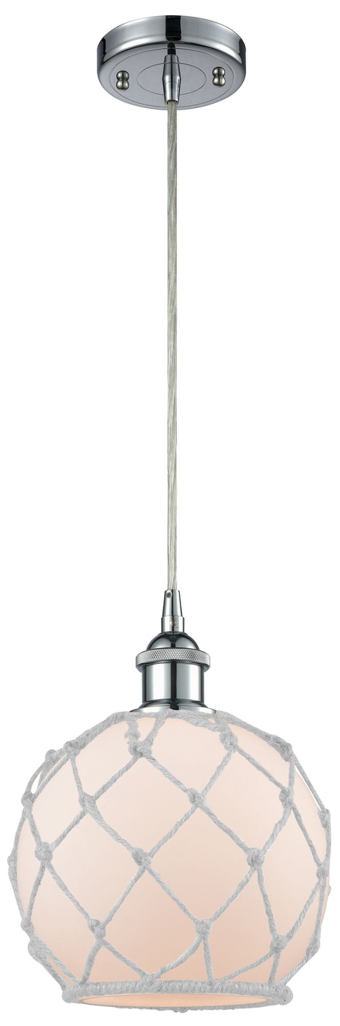 Farmhouse Rope 8"W Chrome Corded Mini Pendant w/ White Rope Shade