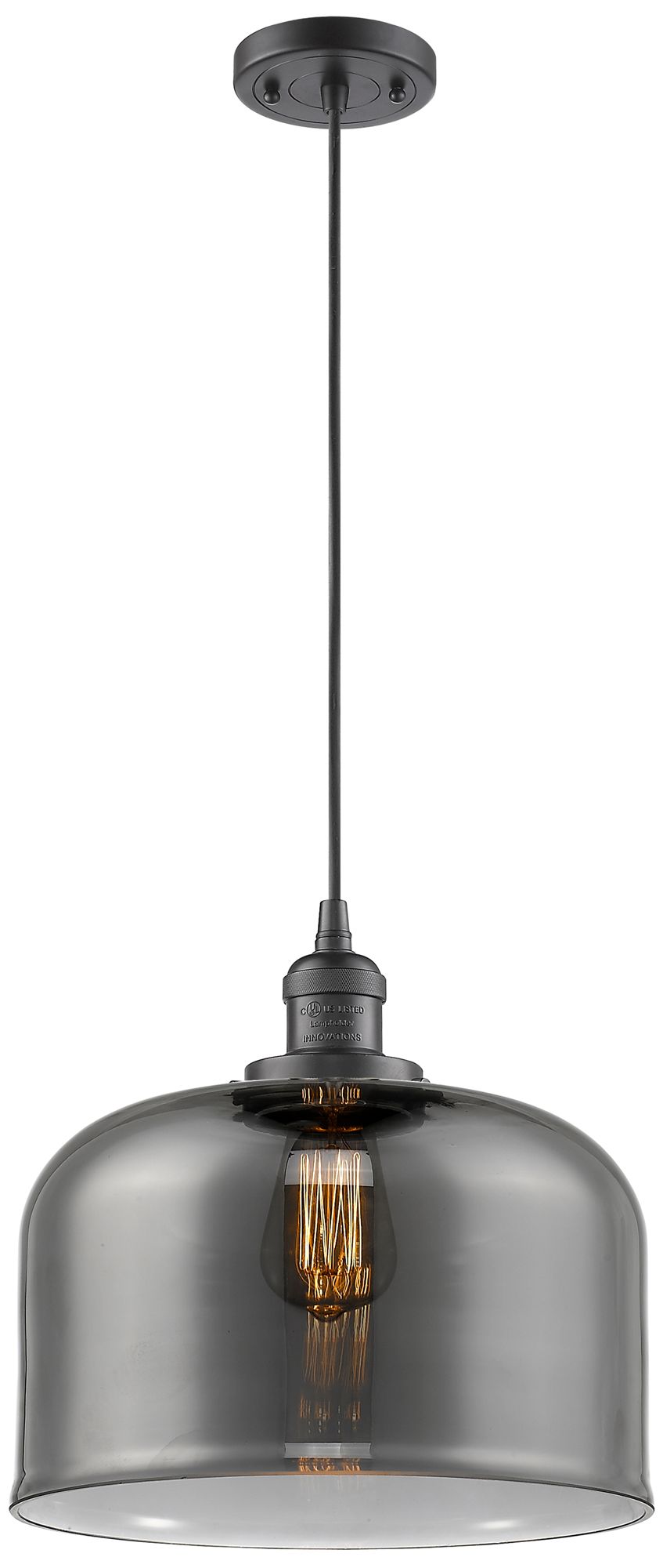 Franklin Restoration Bell 12" Bronze Corded Mini Pendant w/ Smoke Shad