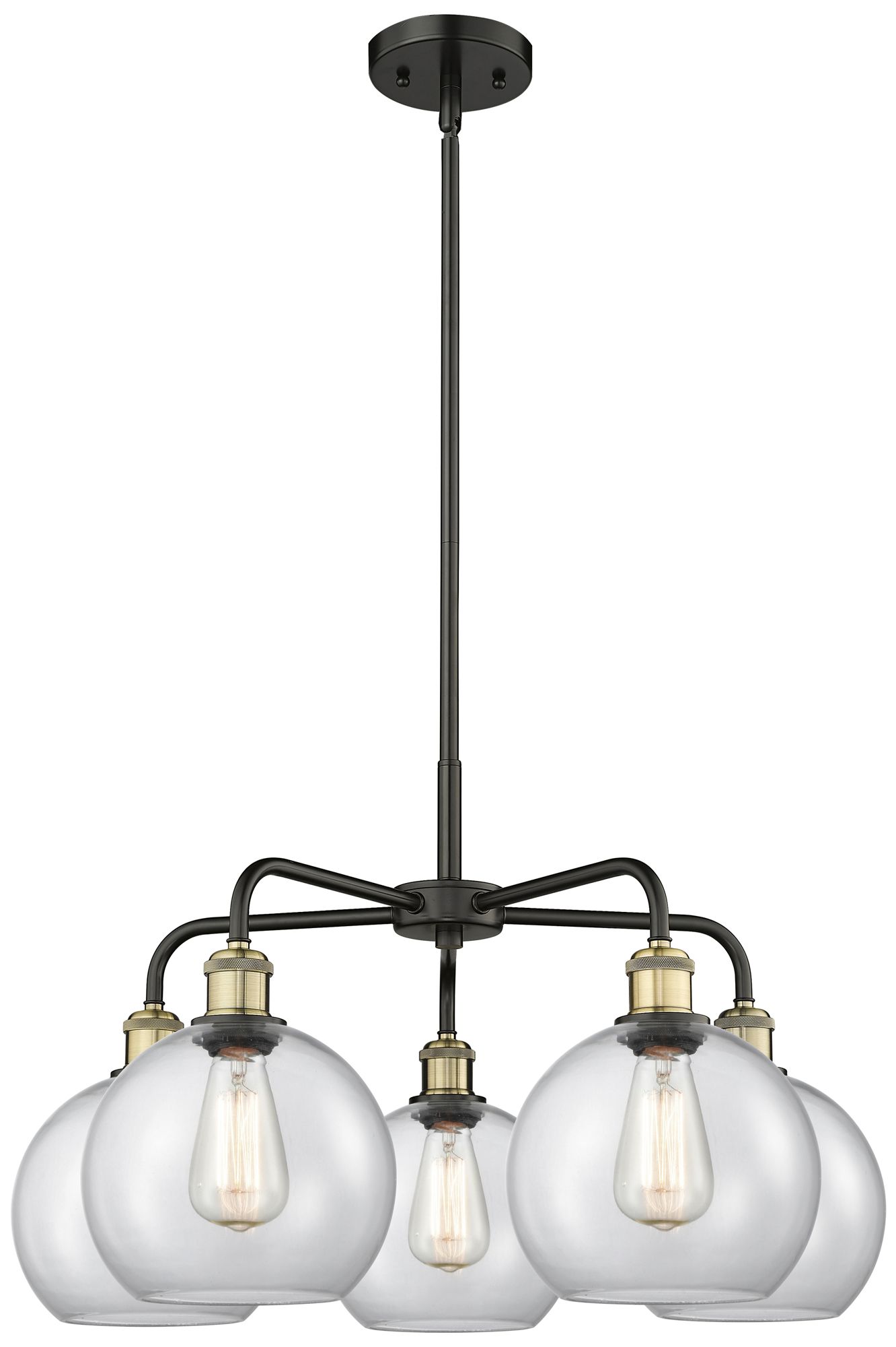 Athens 26"W 5 Light Black Brass Stem Hung Chandelier With Clear Shade