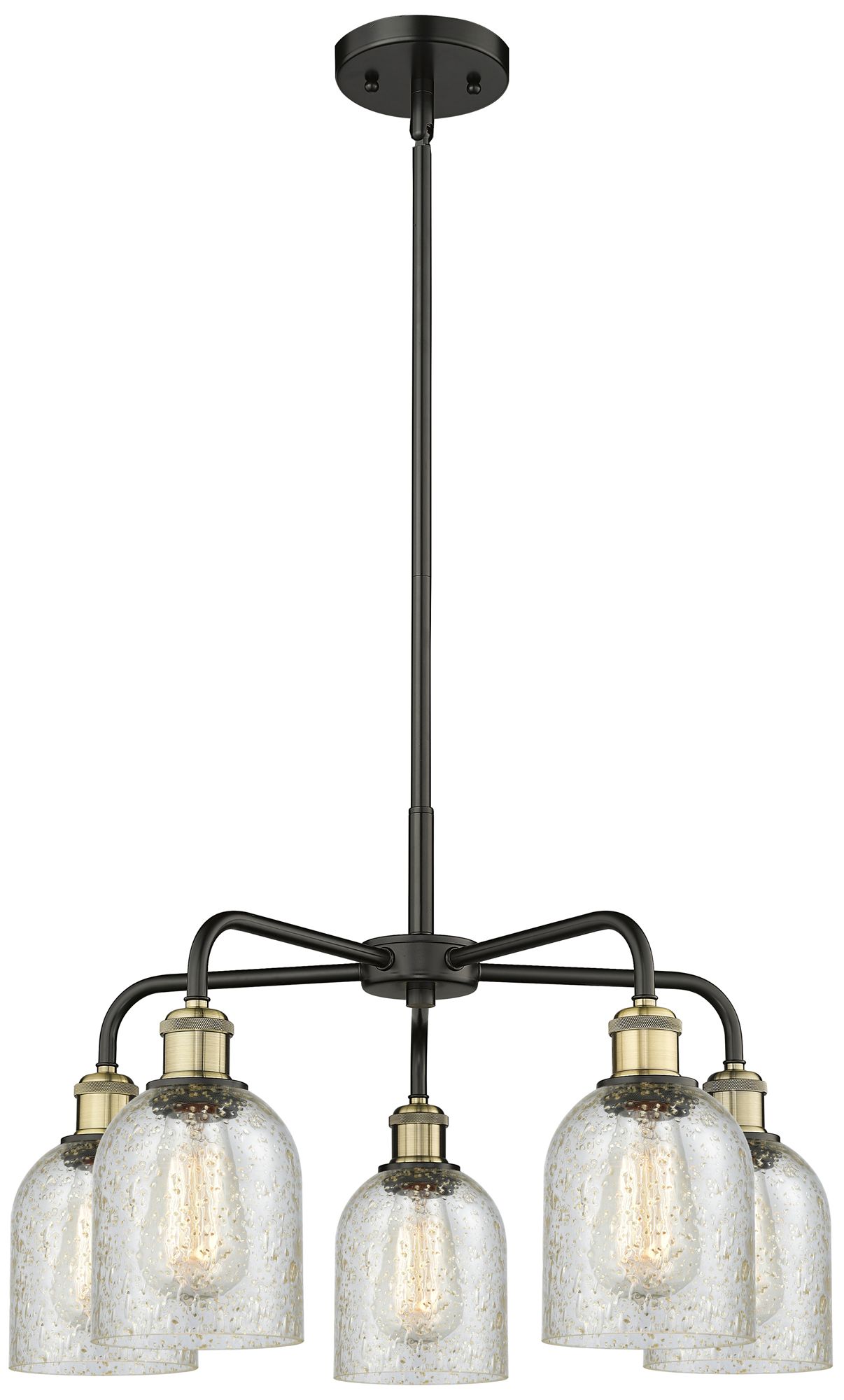 Caledonia 23"W 5 Light Black Brass Stem Hung Chandelier With Mica Shad