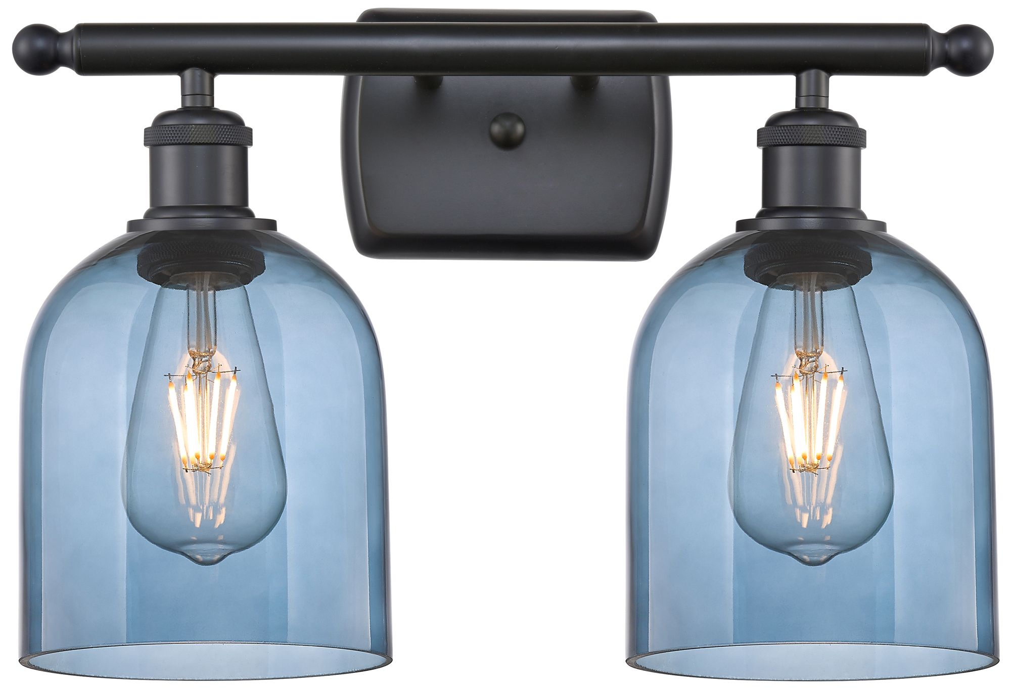 Ballston Bella 15.5"W 2 Light Matte Black Bath Light w/ Princess Blue