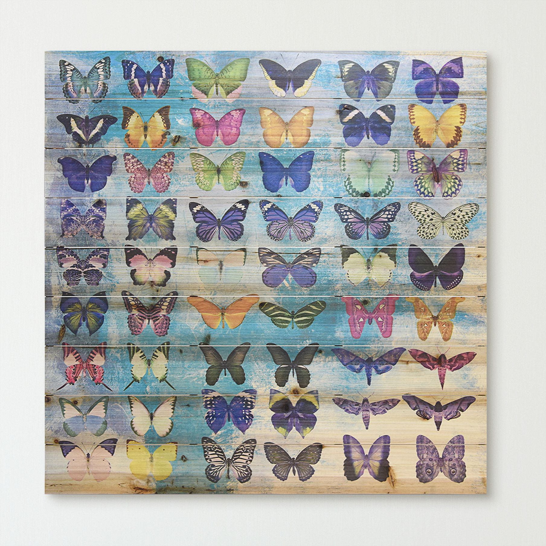 Butterflies 36" Square Giclee Print Solid Wood Wall Art