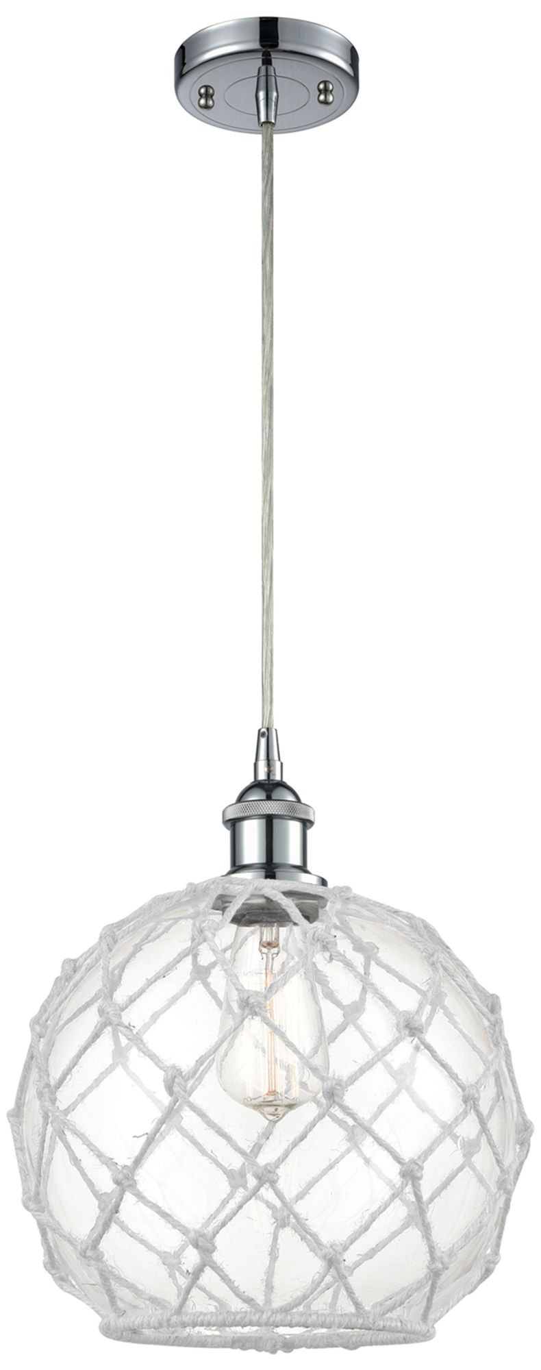 Farmhouse Rope 10"W Chrome Corded Mini Pendant w/ Clear and White Shad