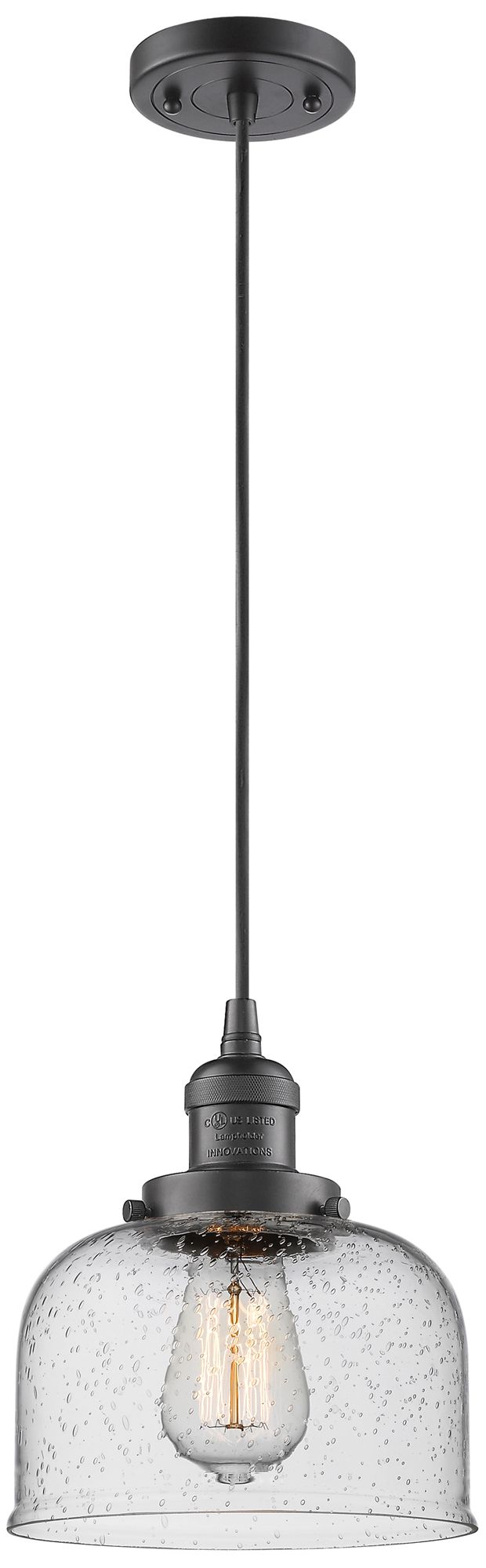 Franklin Restoration Bell 8" Bronze Corded Mini Pendant w/ Seedy Shade