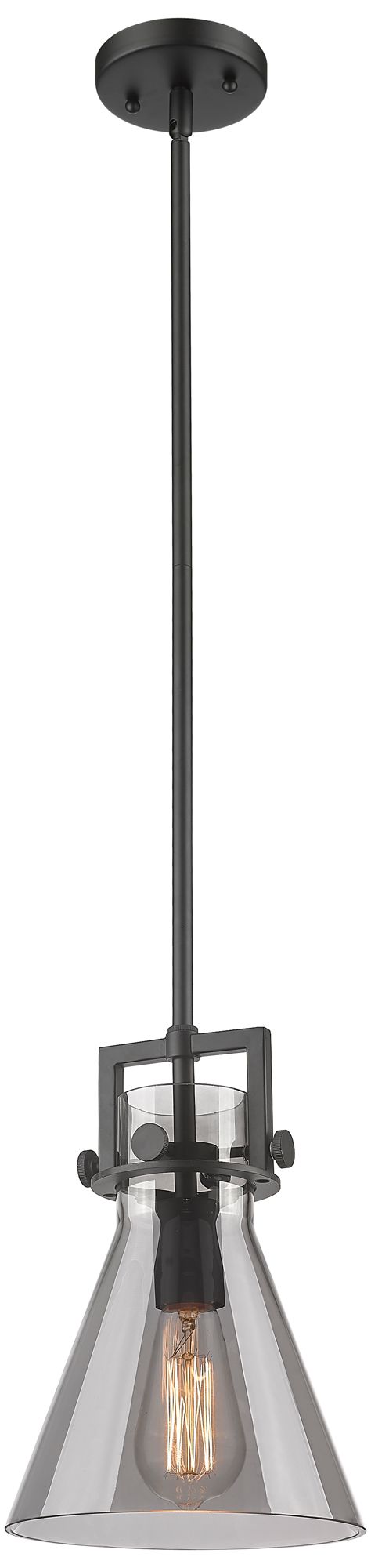 Newton Cone 8" Wide Stem Hung Matte Black Pendant With Smoke Shade