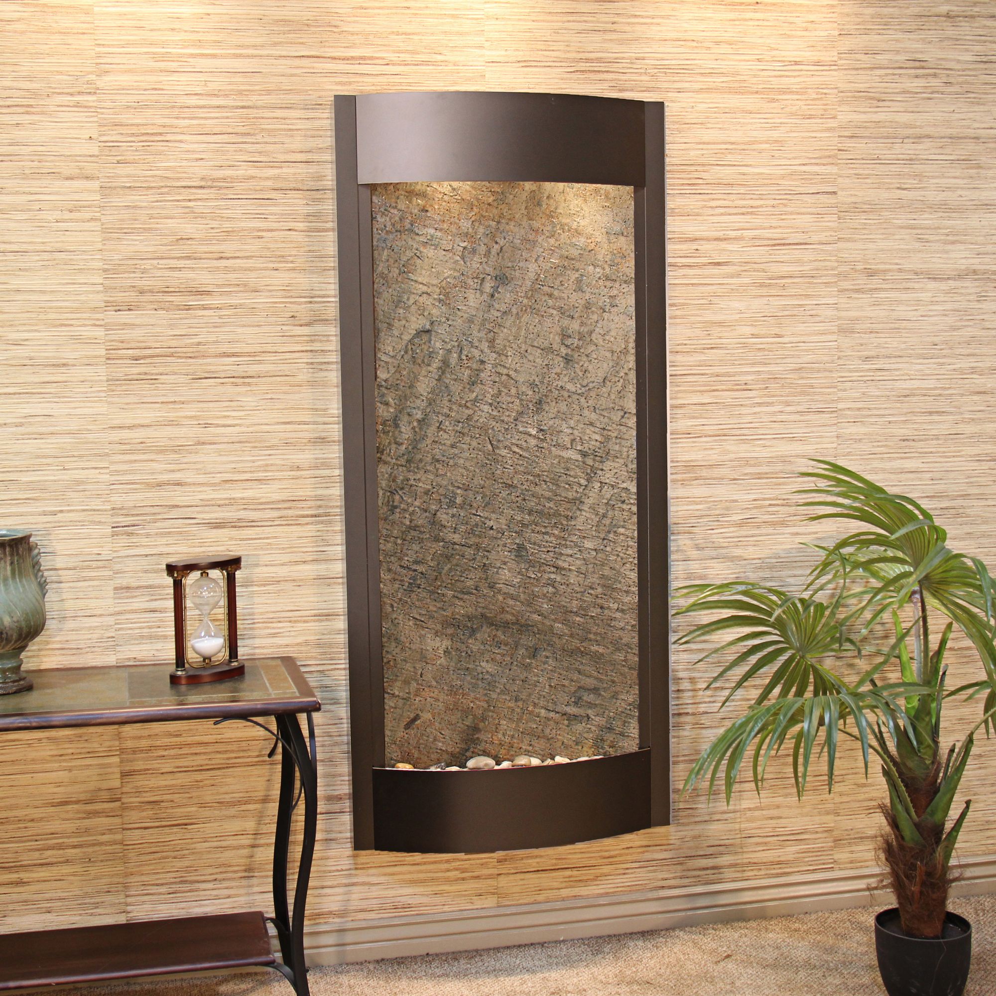 Pacifica Waters 69"H Bronze and Green Stone Wall Fountain