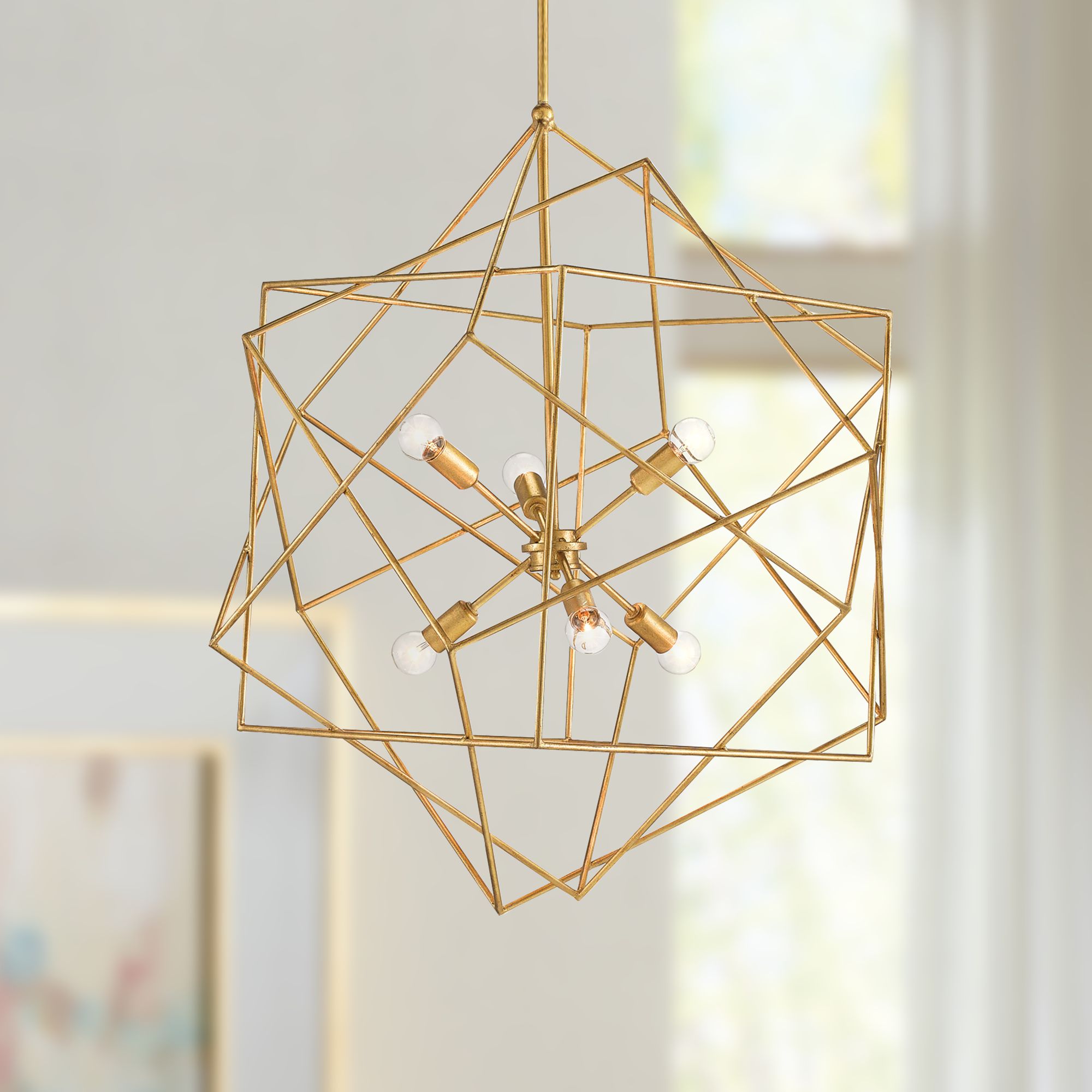 Aerial 31" Wide 6-Light Antique Gold Leaf Pendant Light