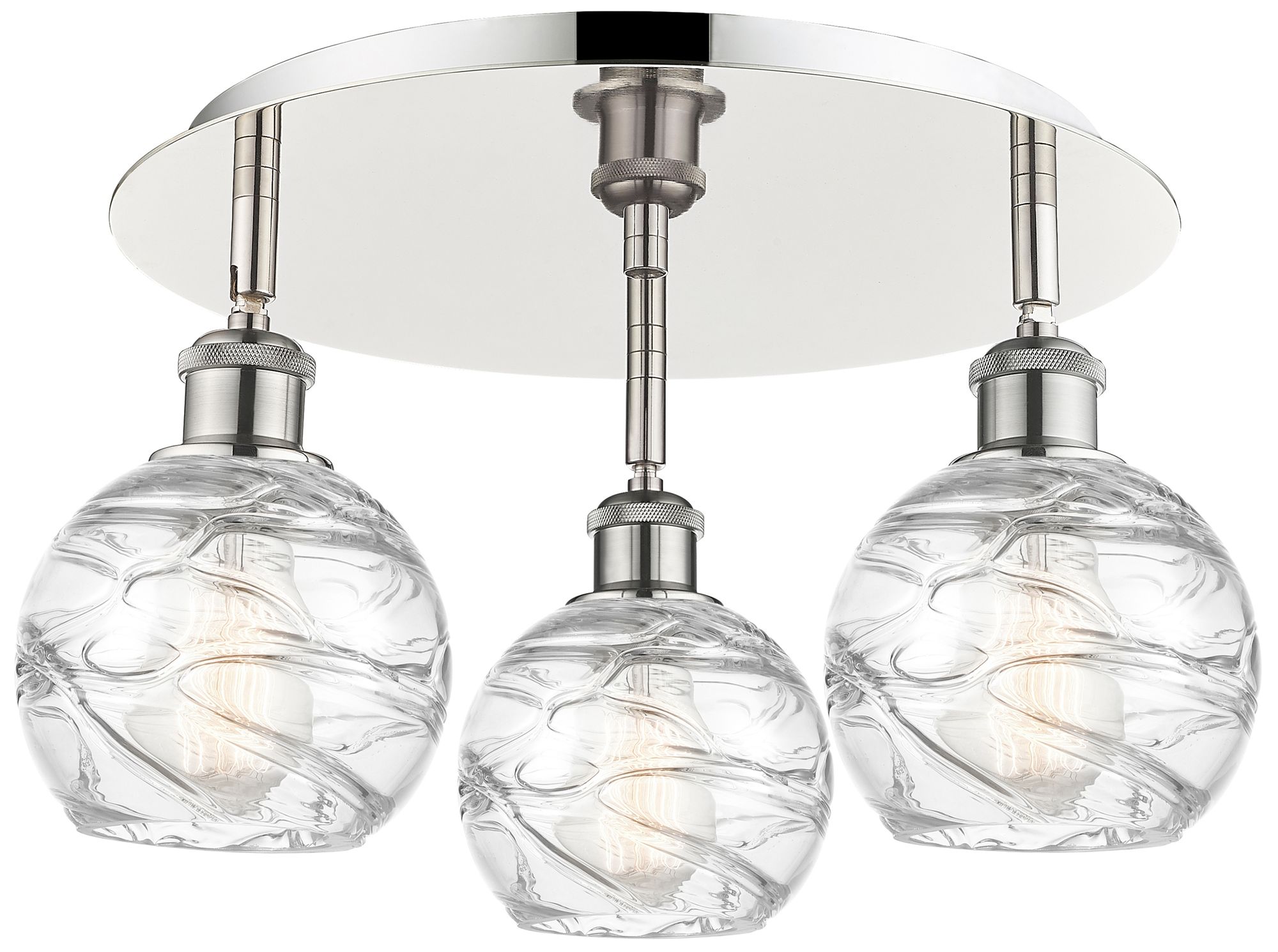Athens 17.63"W 3 Light Polished Nickel Flush Mount With Deco Swirl Sha