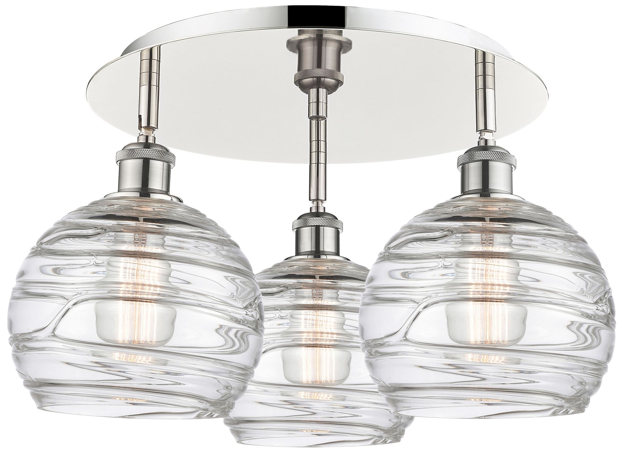 Athens 19.75"W 3 Light Polished Nickel Flush Mount With Deco Swirl Sha
