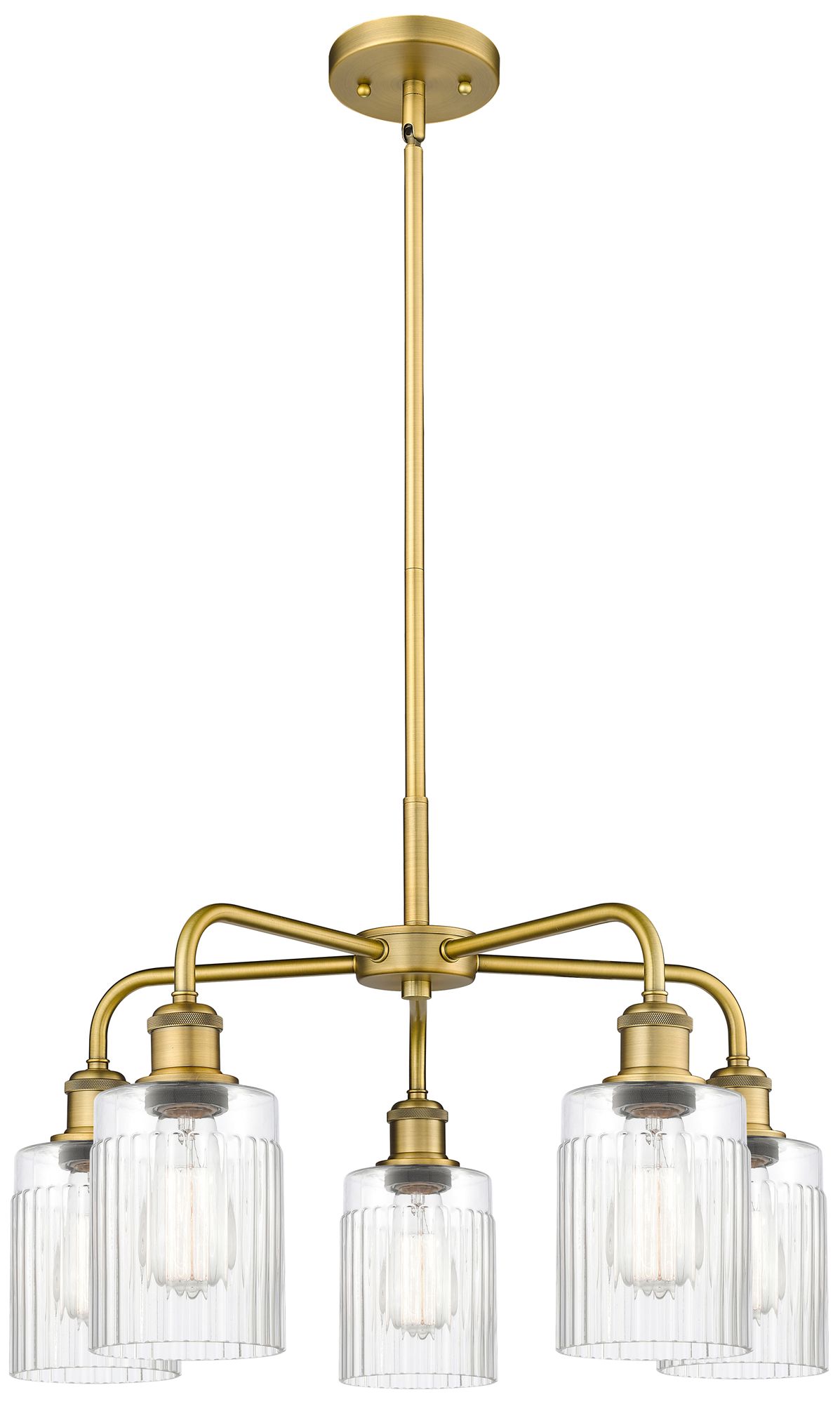 Hadley 22.5"W 5 Light Brushed Brass Stem Hung Chandelier With Clear Sh