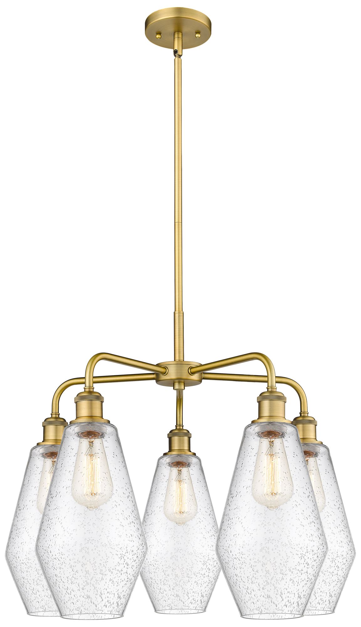 Cindyrella 25"W 5 Light Brushed Brass Stem Hung Chandelier With Seedy