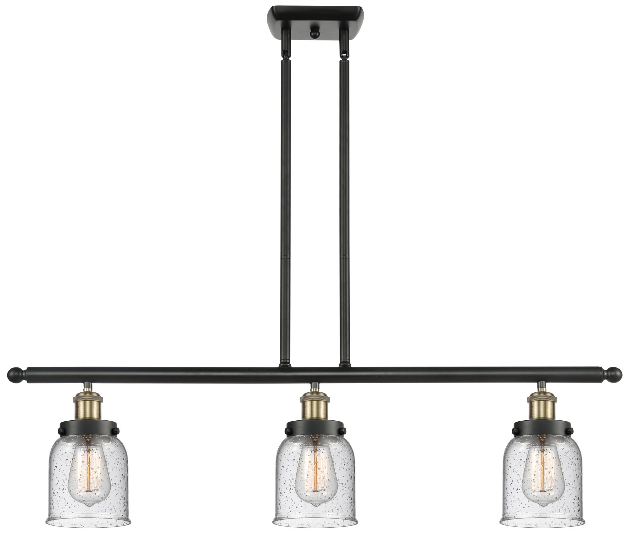 Bell 36" Wide 3 Light Black Brass Island Light w/ Seedy Shade
