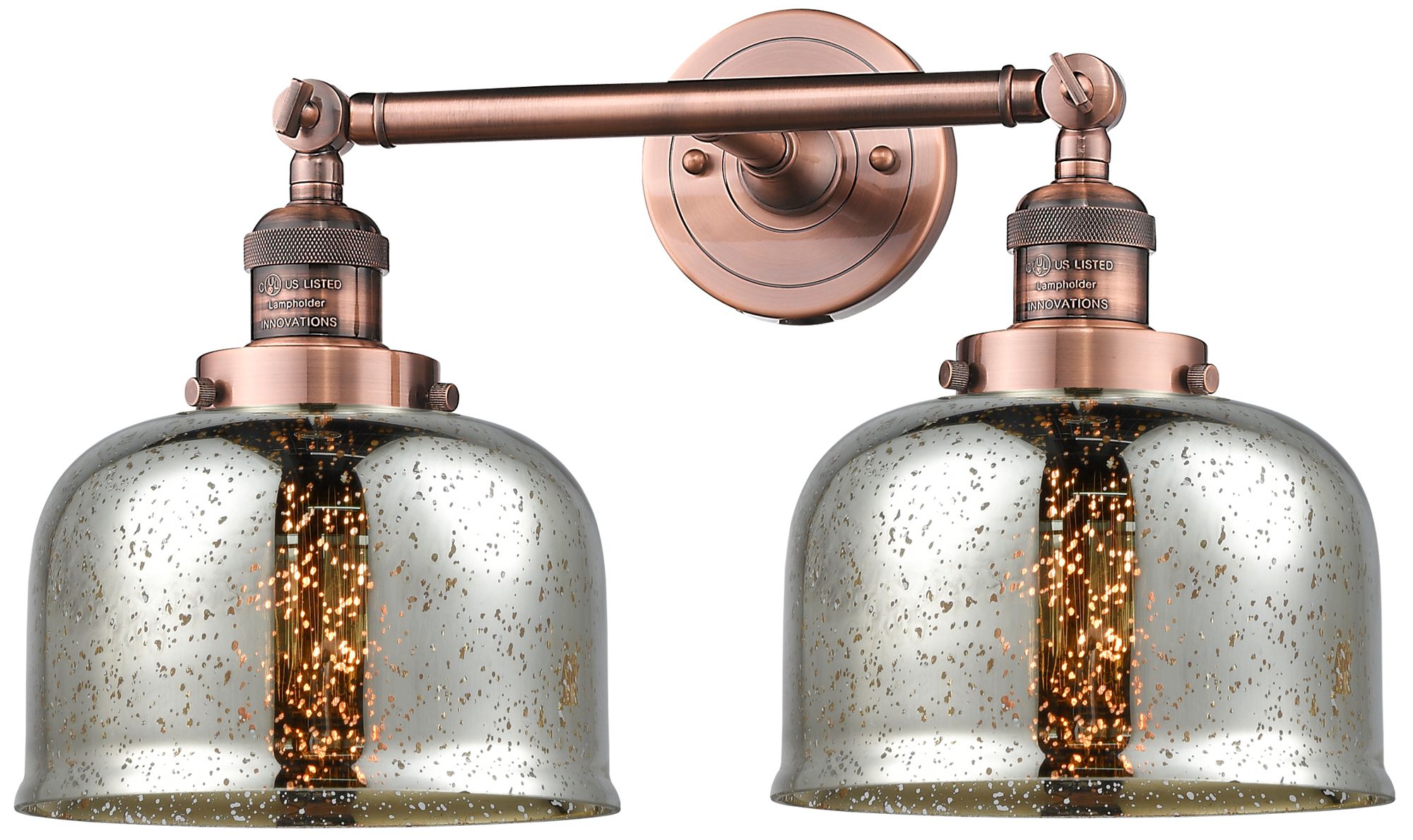 Large Bell 18" 2-Light Antique Copper Bath Light w/ Mercury Shade