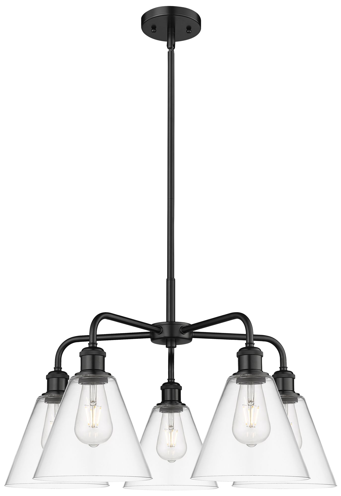 Berkshire 26"W 5 Light Matte Black Stem Hung Chandelier With Clear Sha