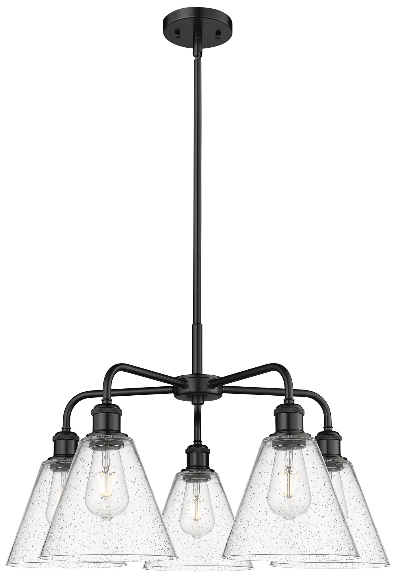 Berkshire 26"W 5 Light Matte Black Stem Hung Chandelier With Seedy Sha