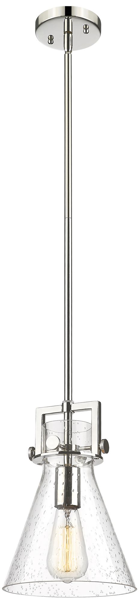 Newton Cone 8" Wide Stem Hung Polished Nickel Pendant With Seedy Shade