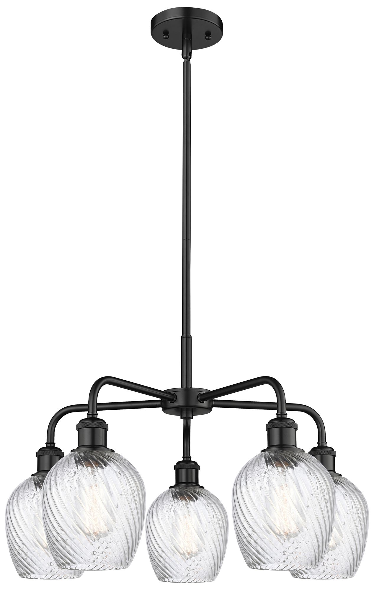 Salina 23"W 5 Light Matte Black Stem Hung Chandelier w/ Spiral Fluted